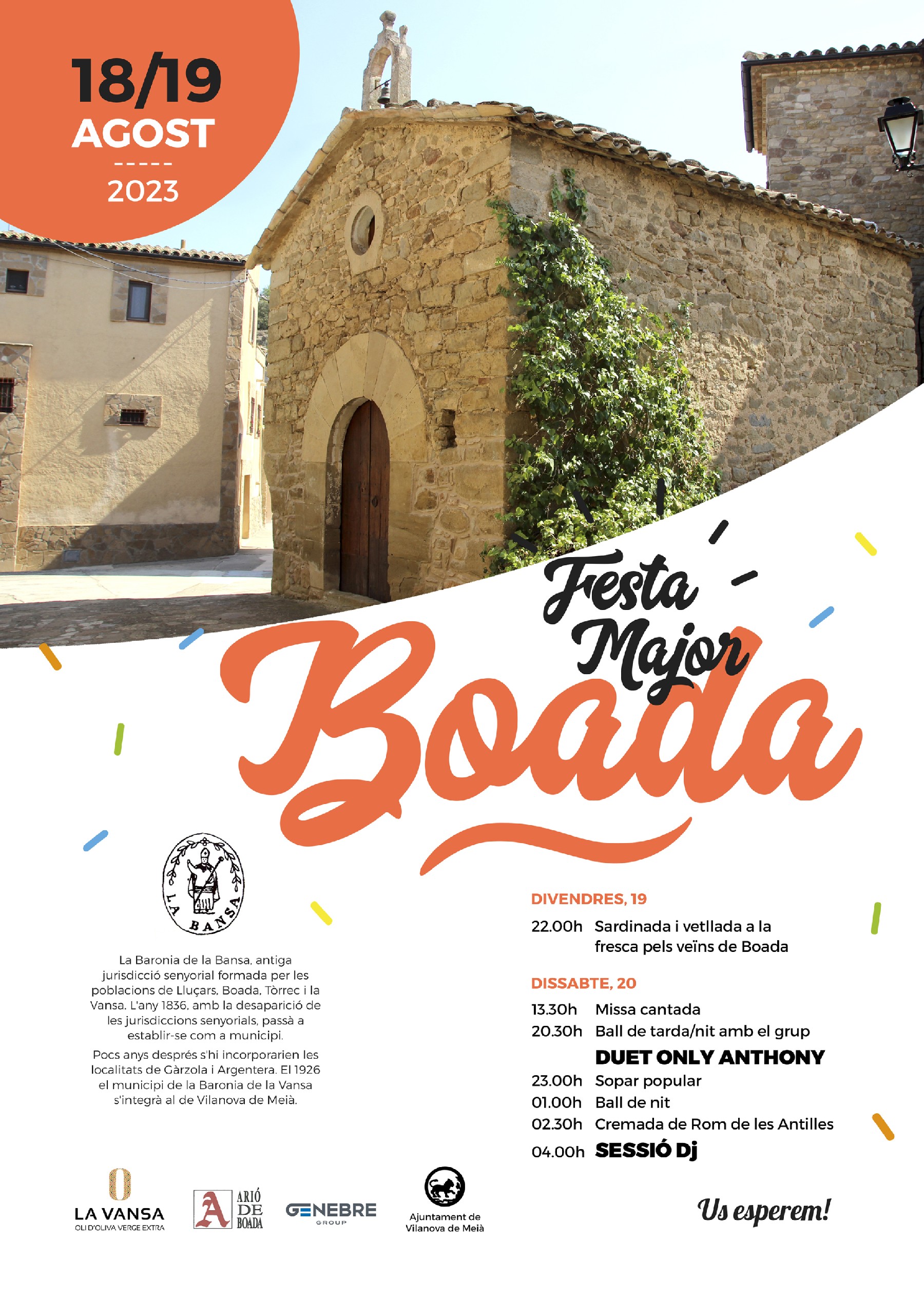 Boada celebra la seva Festa Major els dies 19 i 20 d'agost amb un programa d'activitats per a tots els públics