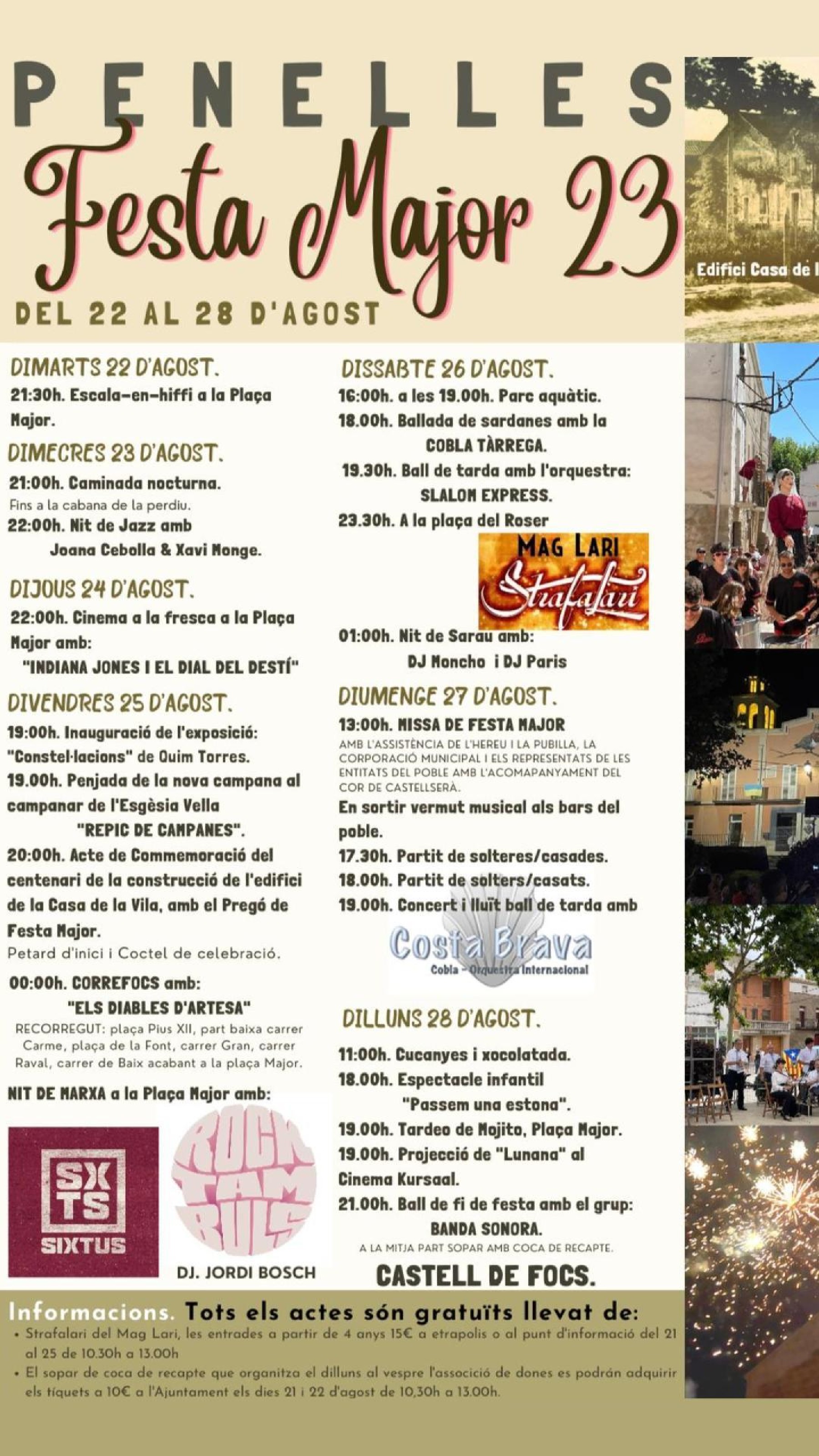 Penelles celebra la seva Festa Major del 22 al 28 d'agost. Comptarà amb un ampli programa d'activitats com: cinema, ball, djs i concerts, màgia i altres propostes
