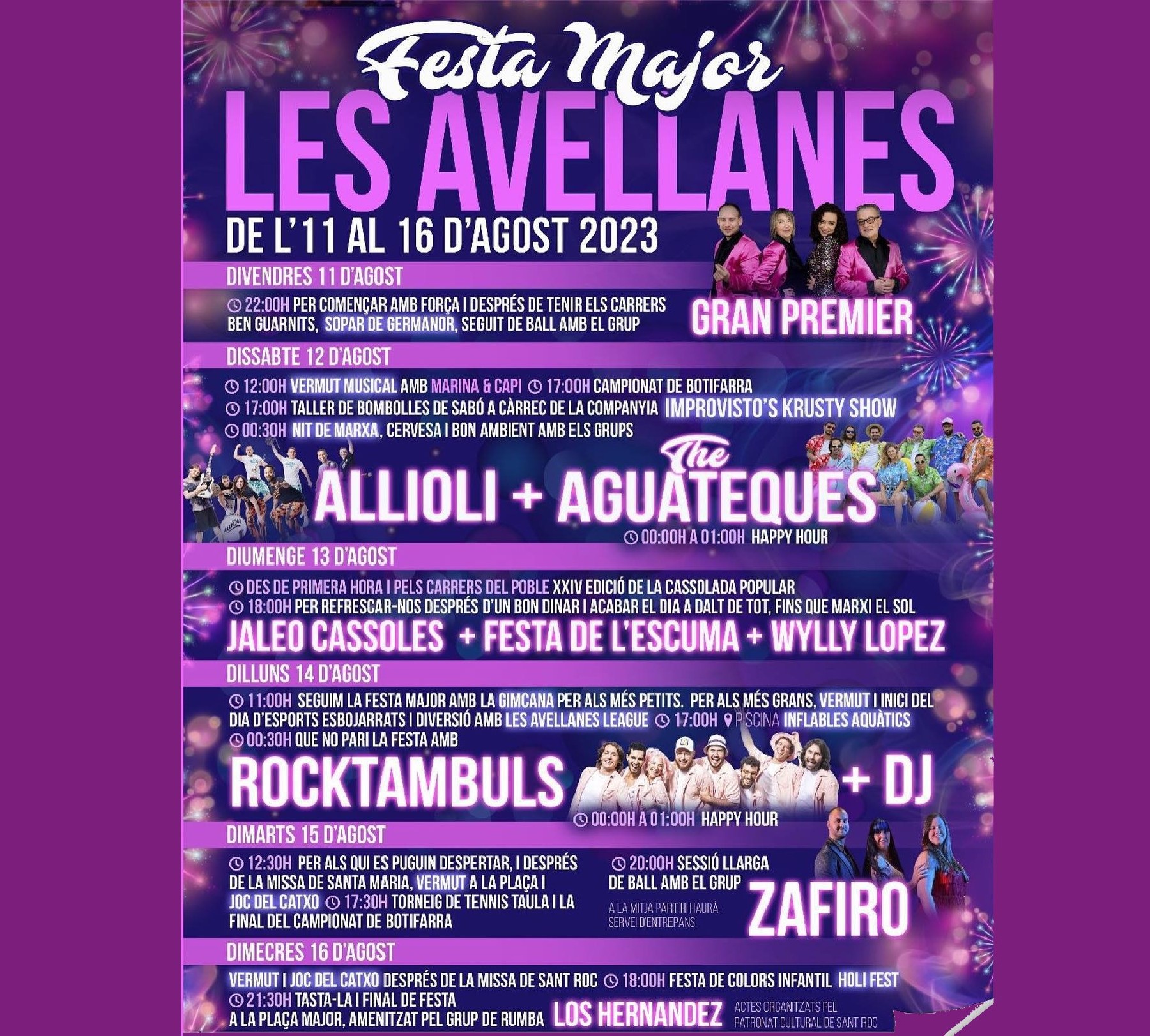 Les Avellanes celebra la seva festa major del divendres 11 al dimecres 16 d'agost. El programa d'actes inclou concerts, espectacles i gastronomia entre d'altres