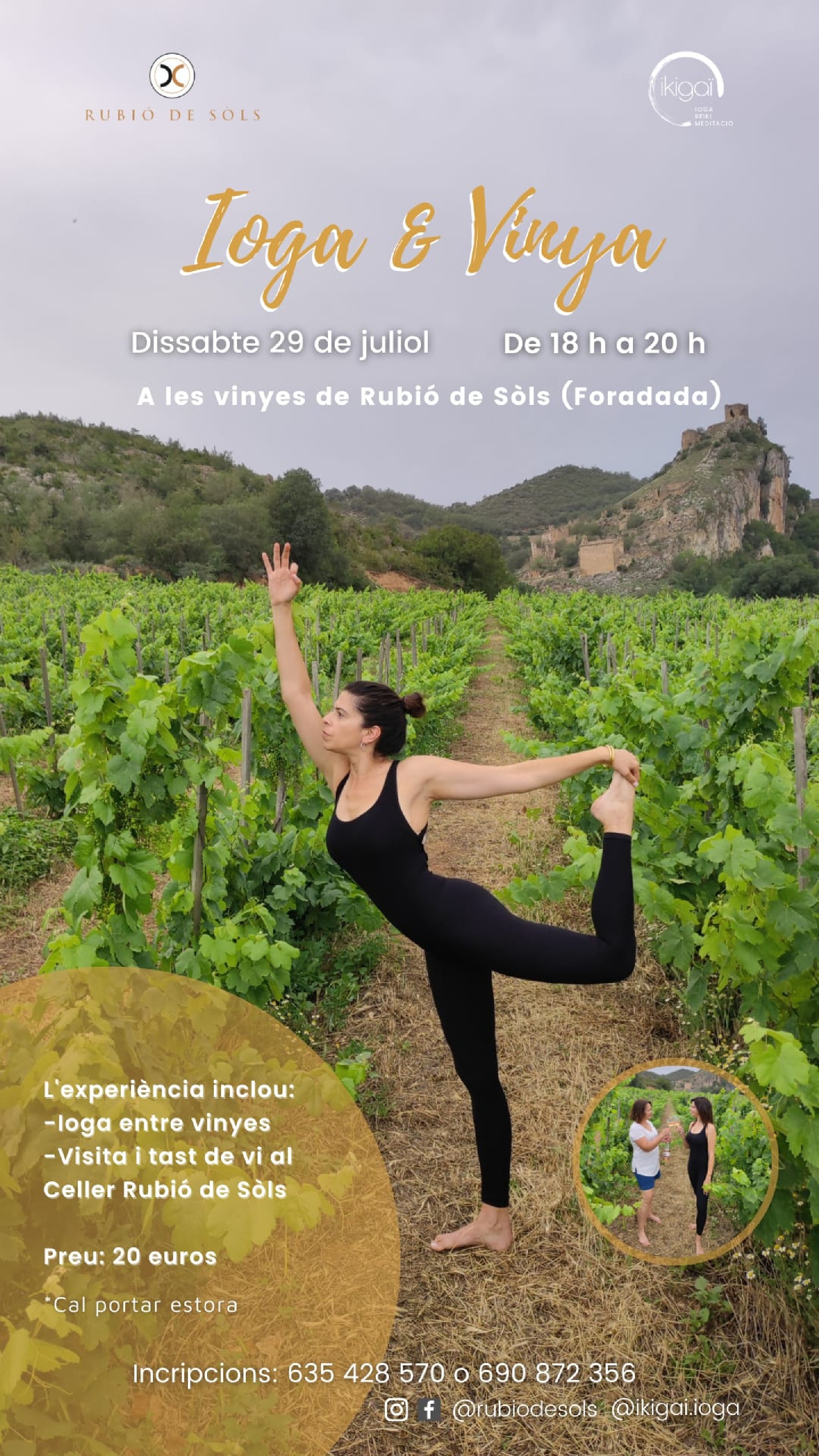 El Celler Rubió de Sols proposa aquest dissabte l'activitat Ioga i Vinya, que combina la pràctica de ioga enmig de les vinyes, amb una visita i tast al celler