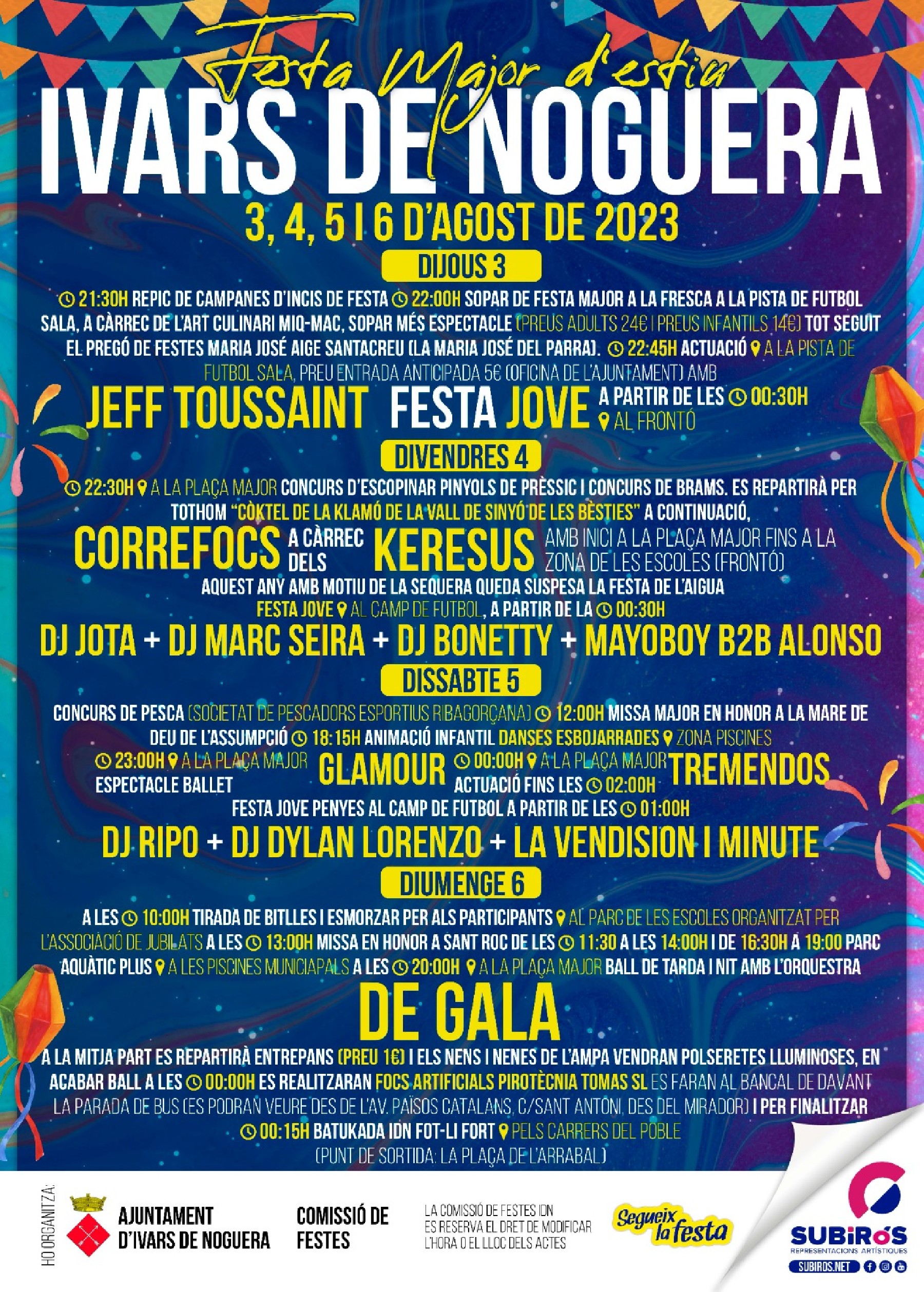 Aquest cap de setmana és festa major a Ivars de Noguera. Com és habitual, en destaquen les actuacions musicals de nit, que es reparteixen entre els balls i concerts de plaça i la gresca jove de les penyes al camp de futbol