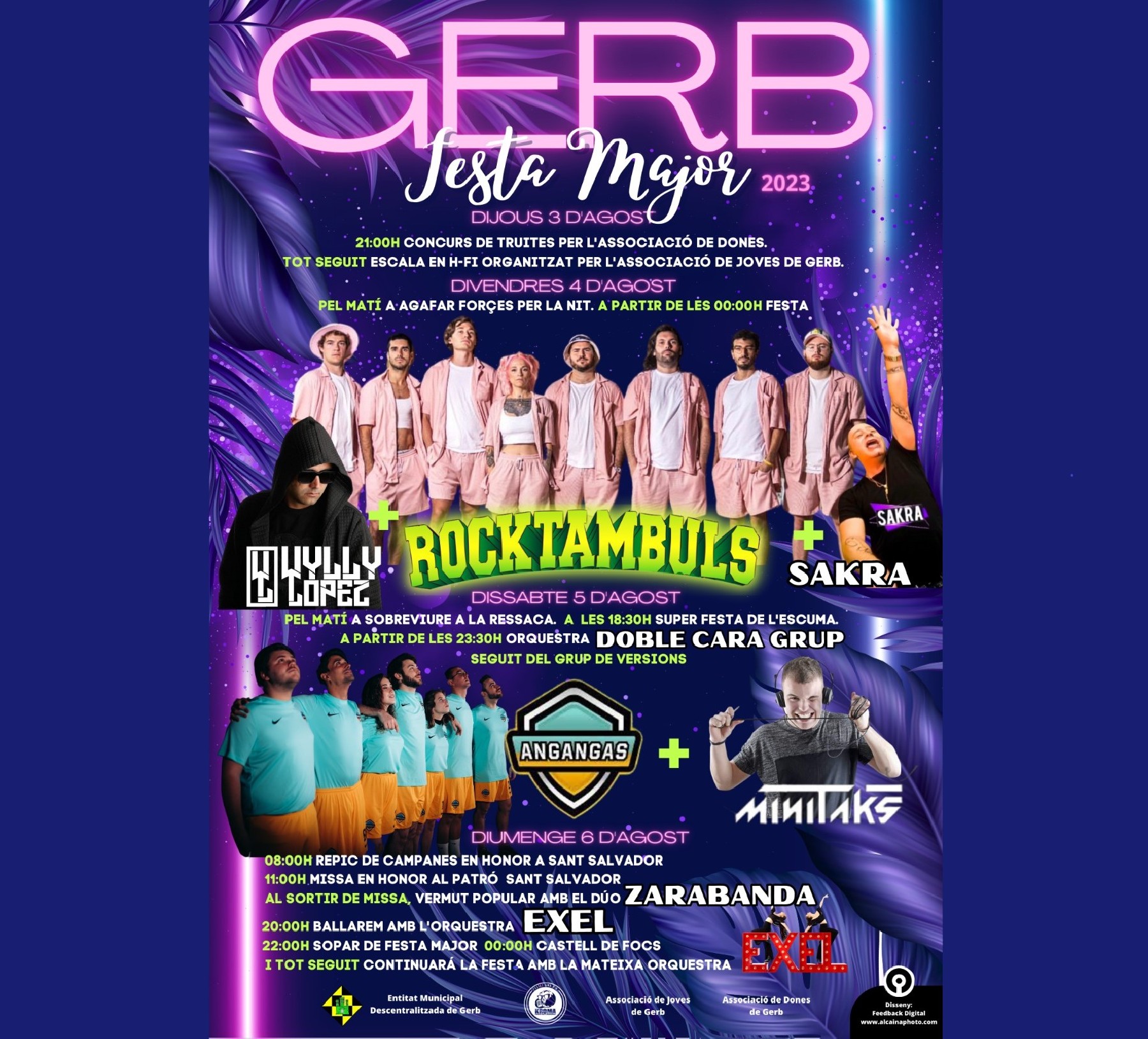 Gerb celebra la seva Festa Major del 3 al 6 d'agost de 2023. El programa d'actes és molt variat i inclou concerts, espectacles infantils, activitats esportives i molt més