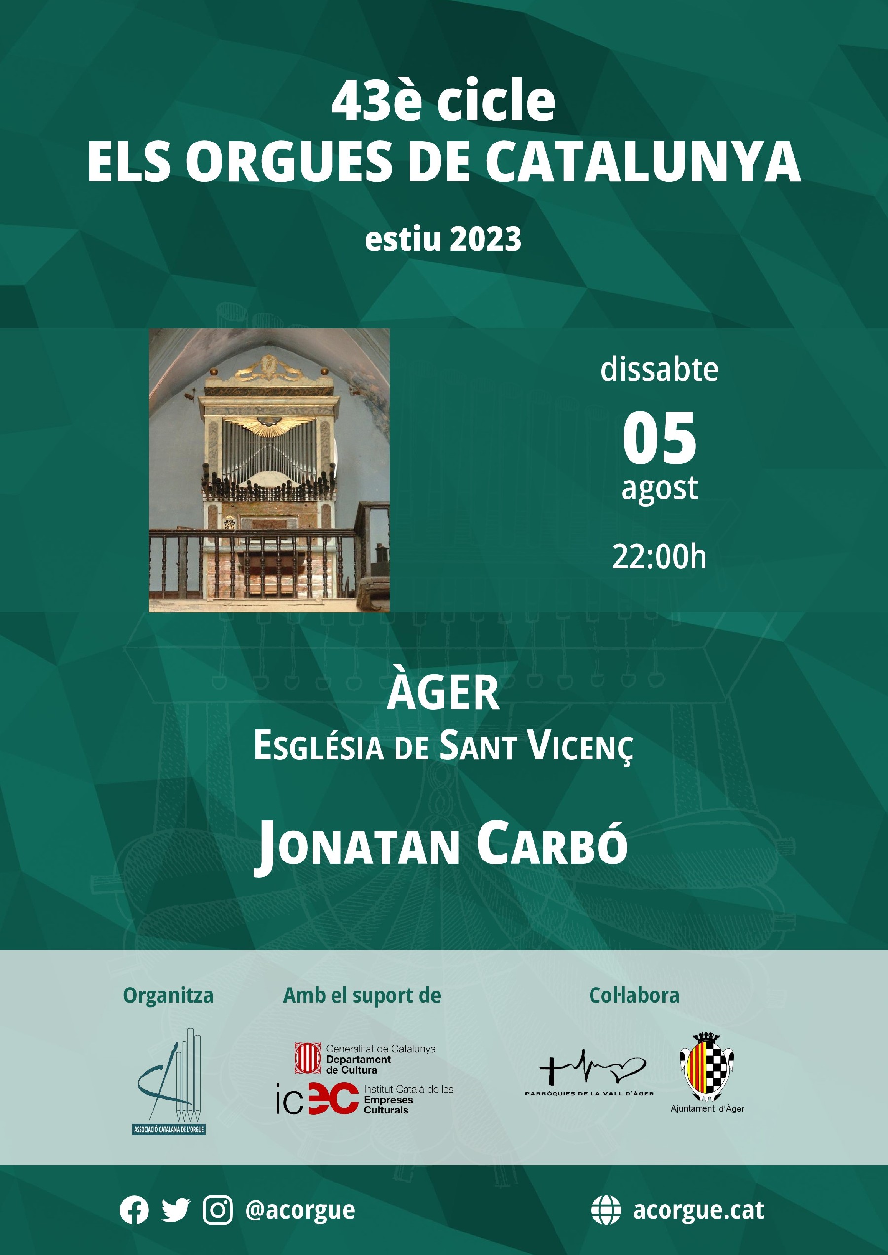 El cicle 'Els orgues de Catalunya' farà parada aquest dissabte 5 d'agost a l'església Sant Vicenç d'Àger de la ma de l'organista Jonatan Carbó