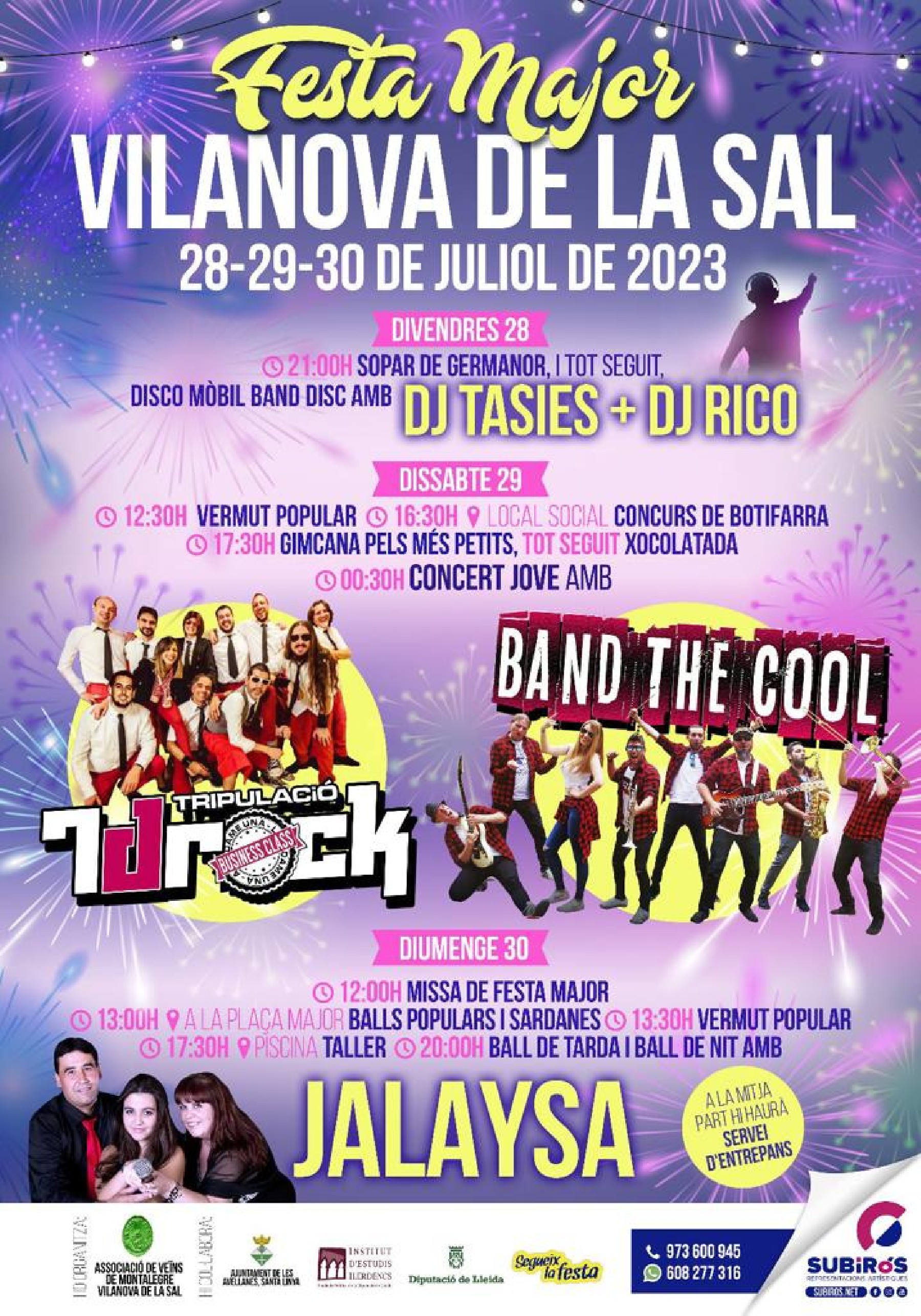 Vilanova de la Sal celebra aquest cap de setmana la seva Festa Major. En destaquen les sessions de dj del divendres i la nit de concerts el dissabte amb 7dRock i Band The Cool. El programa inclou també propostes familiars