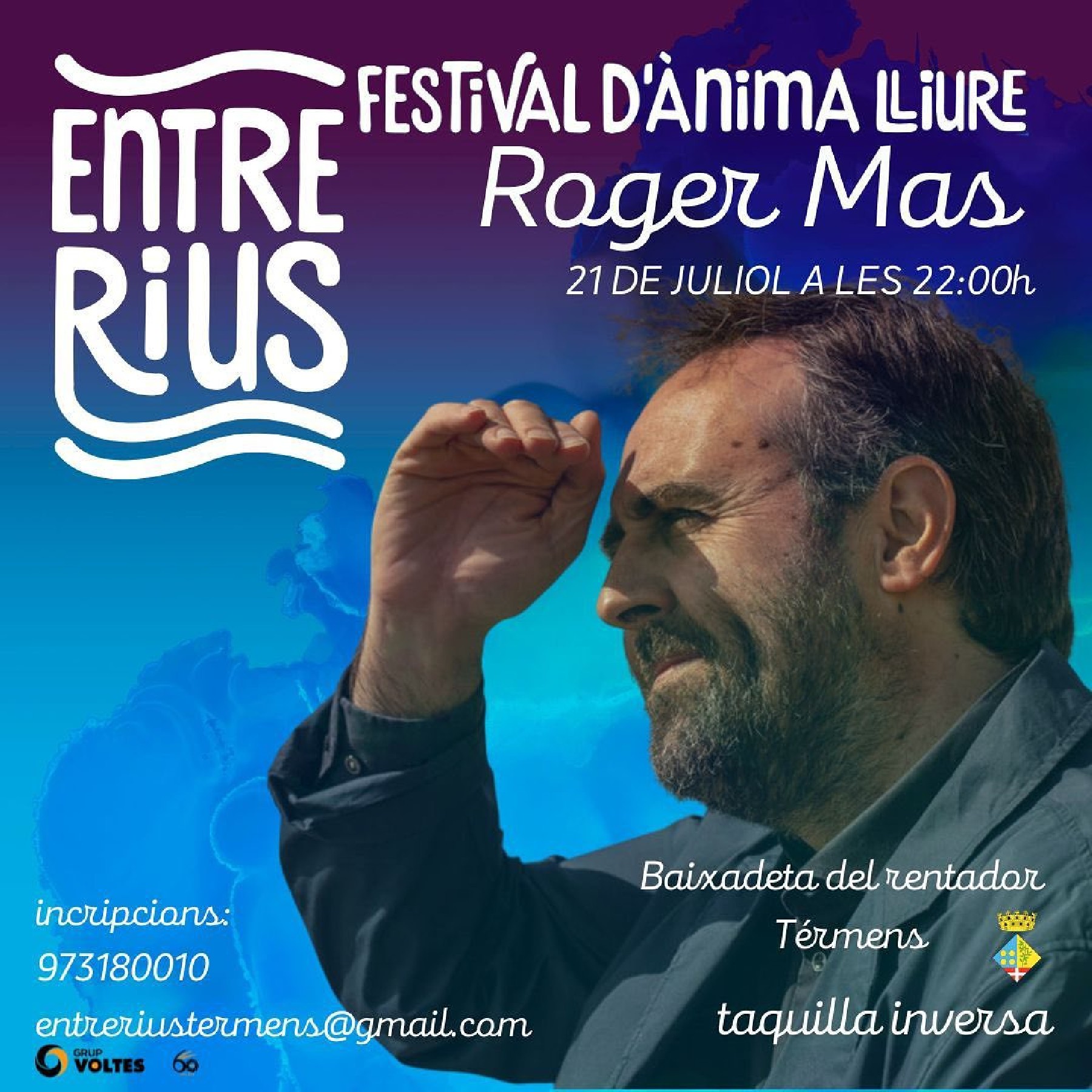Aquest divendres continua el Festival EntreRius de Térmens amb la música del cantautor Roger Mas. El concert començarà a partir de les 10 del vespre a la baixada del rentador de Térmens