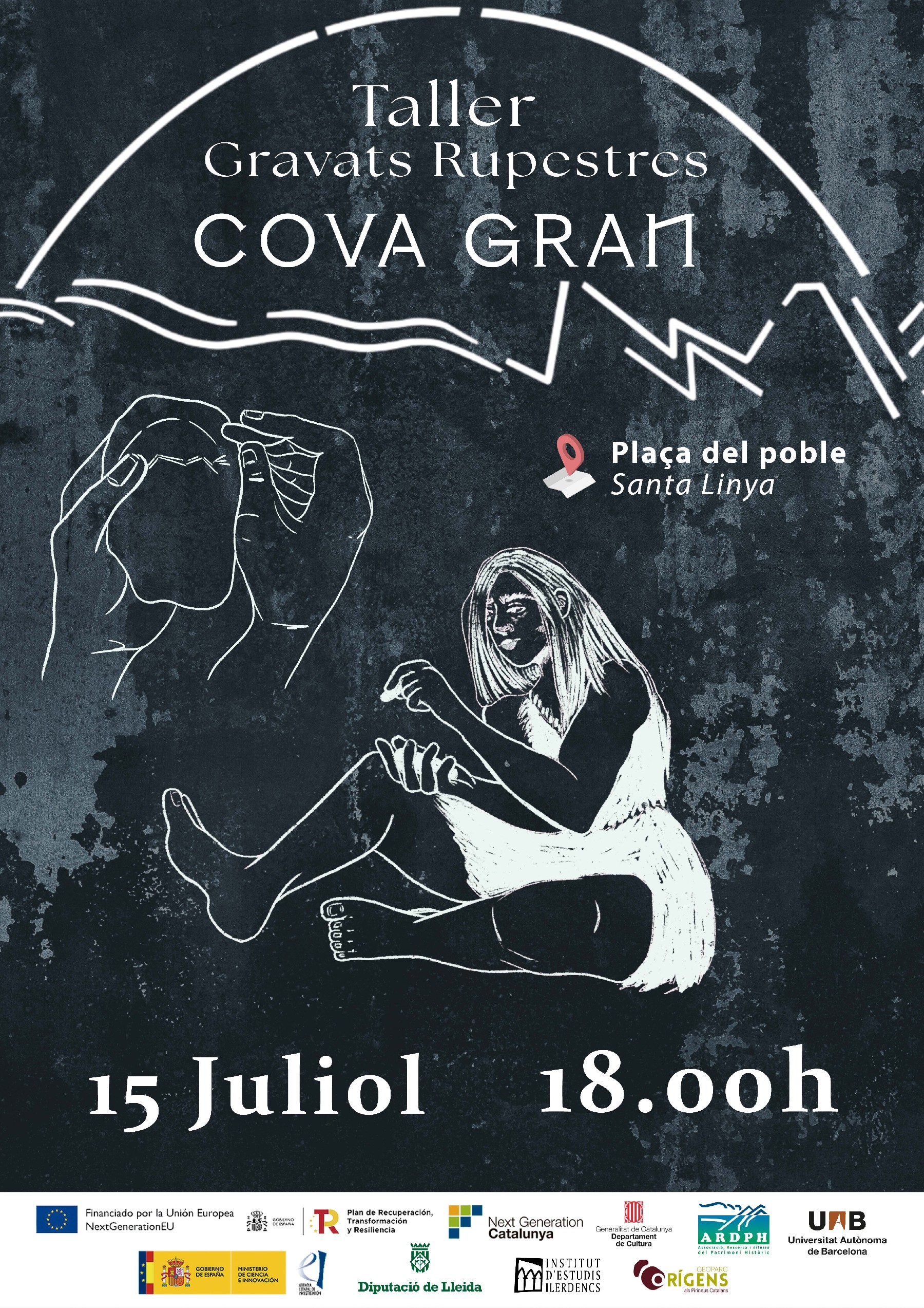 El proper dissabte 15 de juliol a les 18 h , la plaça de Santa Linya acollirà un taller de gravats rupestres de la mà de l'artista Nil Nebot