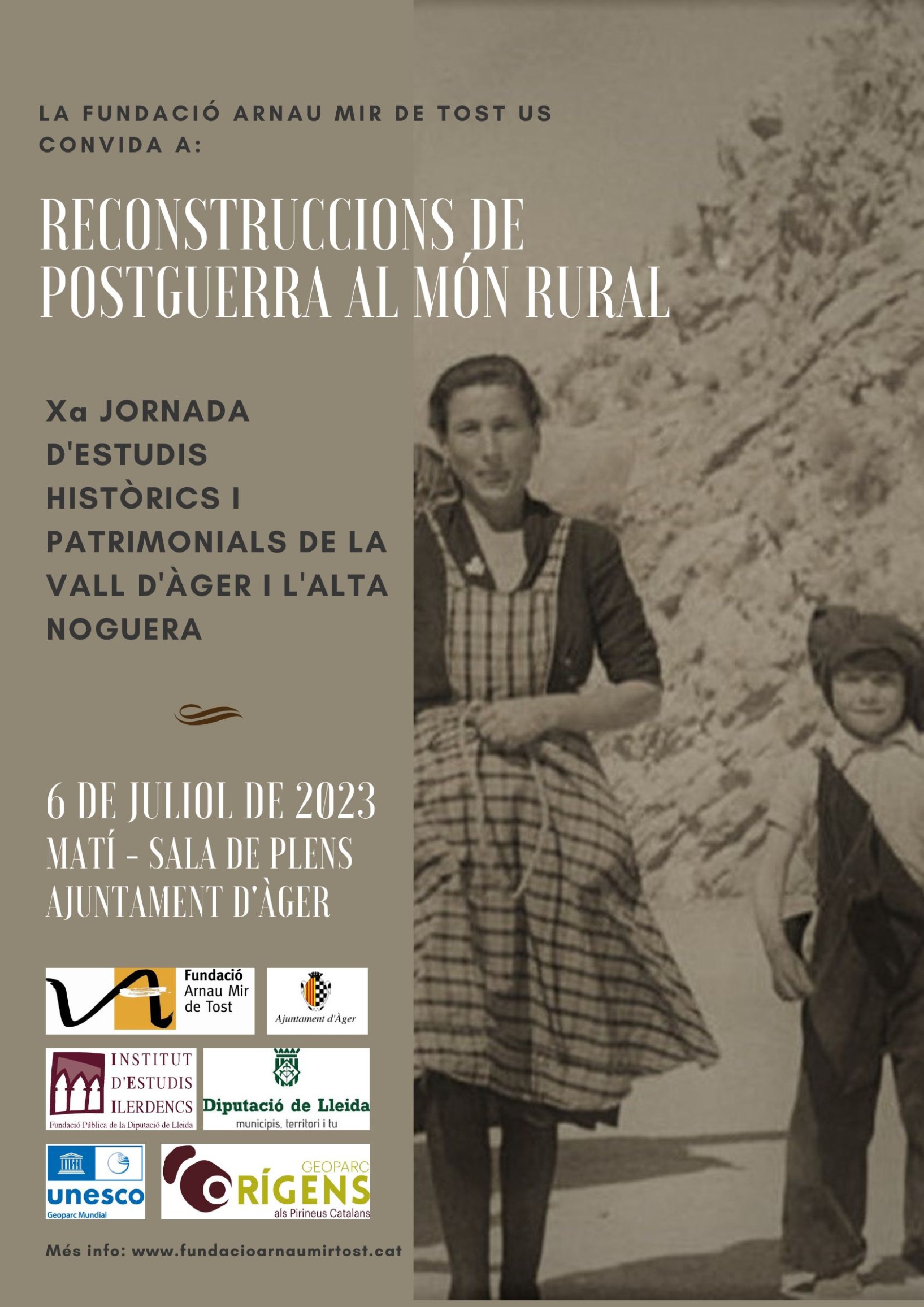 La Fundació Arnau Mir de Tost celebra la X Jornada d'Estudis Històrics i Patrimonials de la Vall d'Àger i l'Alta Noguera. Es farà el 6 de juliol a Àger i versarà sobre les Reconstruccions de postguerra al món rural'