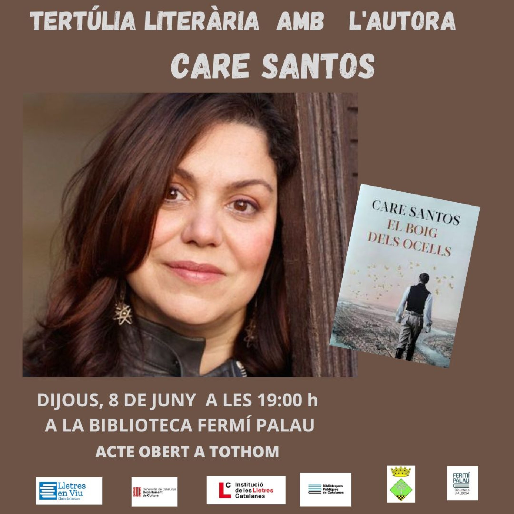Aquest dijous tindrà lloc a la biblioteca Fermí Palau d'Albesa una tertúlia literària amb l'autora Care Santos, amb motiu de la presentació de la seva novel·la 'El boig dels ocells'