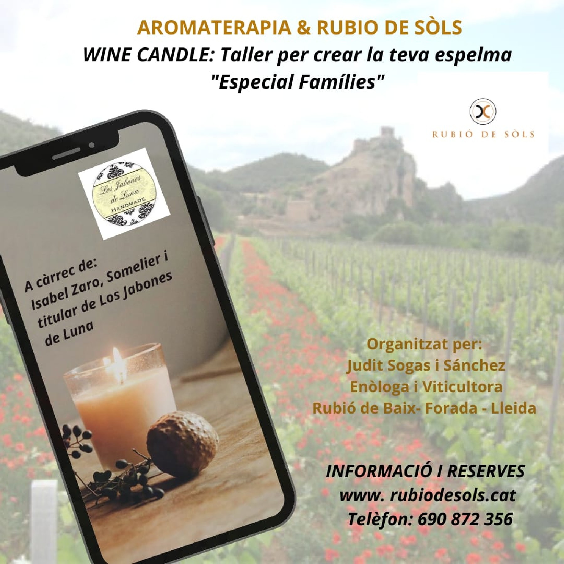 Dins del programa d'actes d'enoturisme del celler Rubió de Sols, aquest dissabte 10 de juny es farà una de les propostes més familiars, dedicada a l'aromateràpia