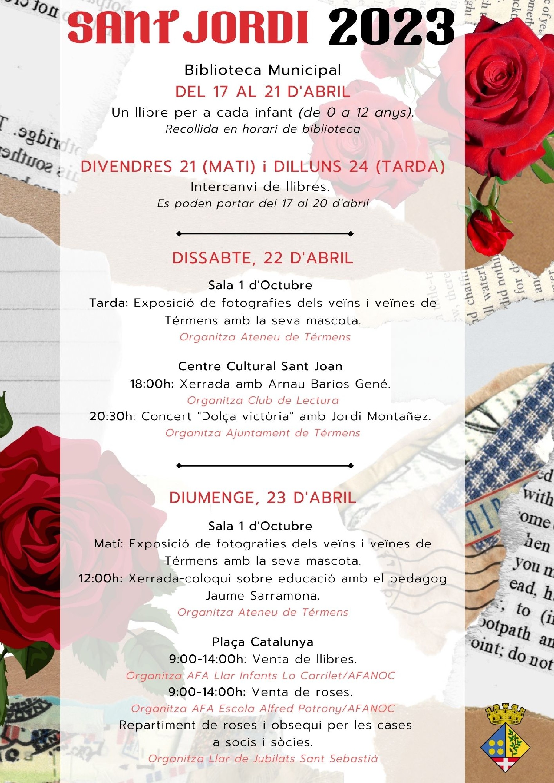 Térmens celebra Sant Jordi amb un cap de setmana d'activitats culturals, que tindran el seu màxim exponent el dissabte al vespre amb el concert 'Dolça Victòria' de Jordi Montañez