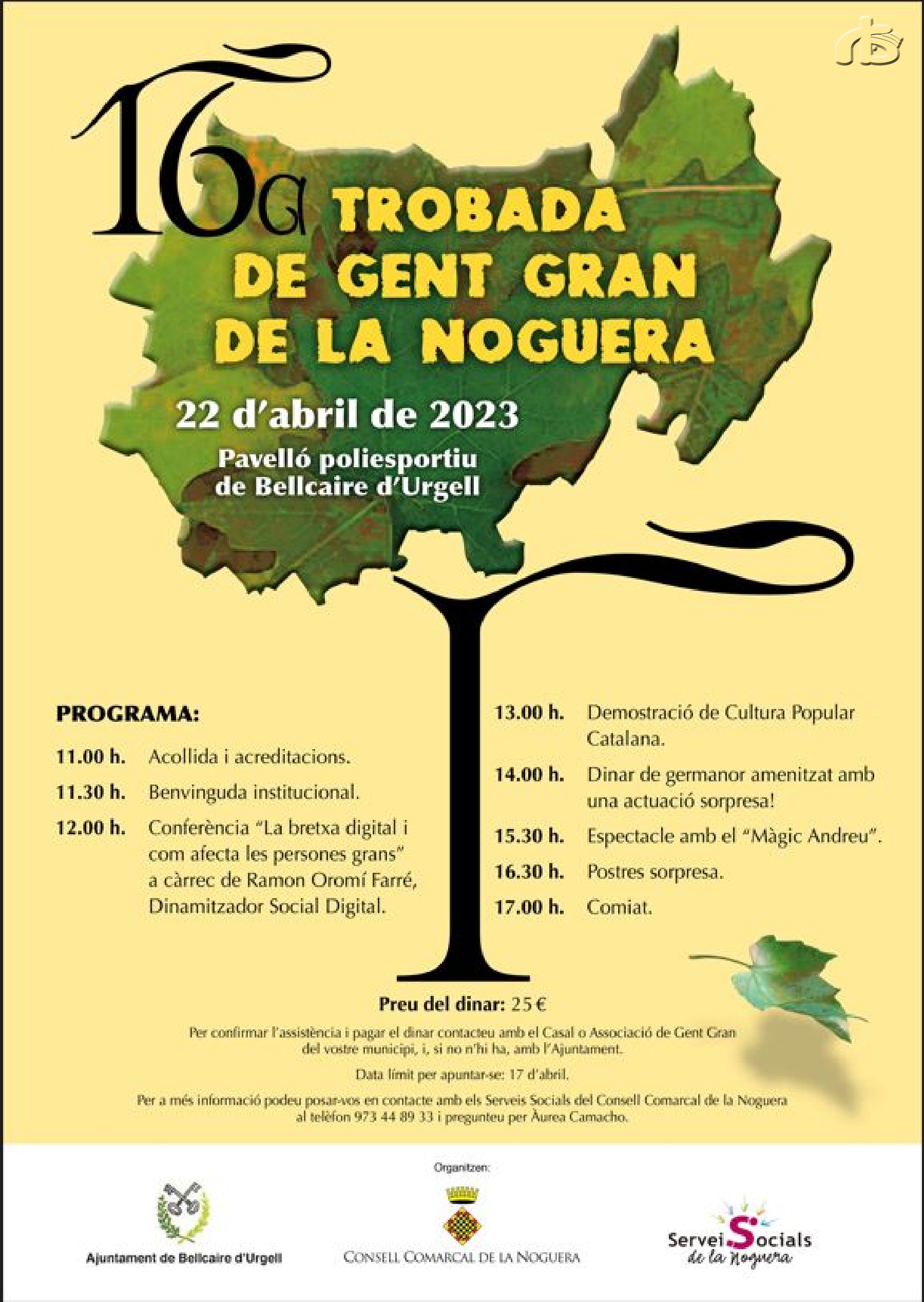 Bellcaire d'Urgell acollirà el proper dissabte 22 d'abril la 16a Trobada de Gent Gran organitzada per l'àrea de Serveis Socials del Consell Comarcal de la Noguera