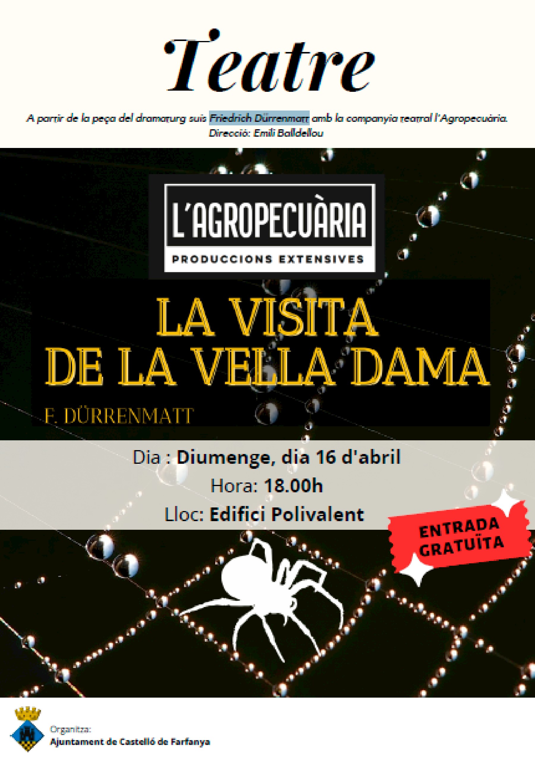 La companyia l'Agropecuària Produccions Extensives porta la representació de l'obra de teatre 'La visita de la vella dama' aquest diumenge a Castelló de Farfanya