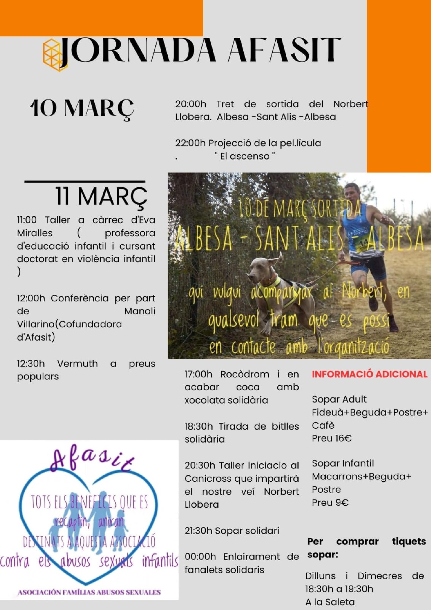 Aquest cap de setmana a Albesa es celebra la Jornada Afasit contra els abusos sexuals infantils. Inclou activitats, conferències, tallers i altres propostes per recaptar fons