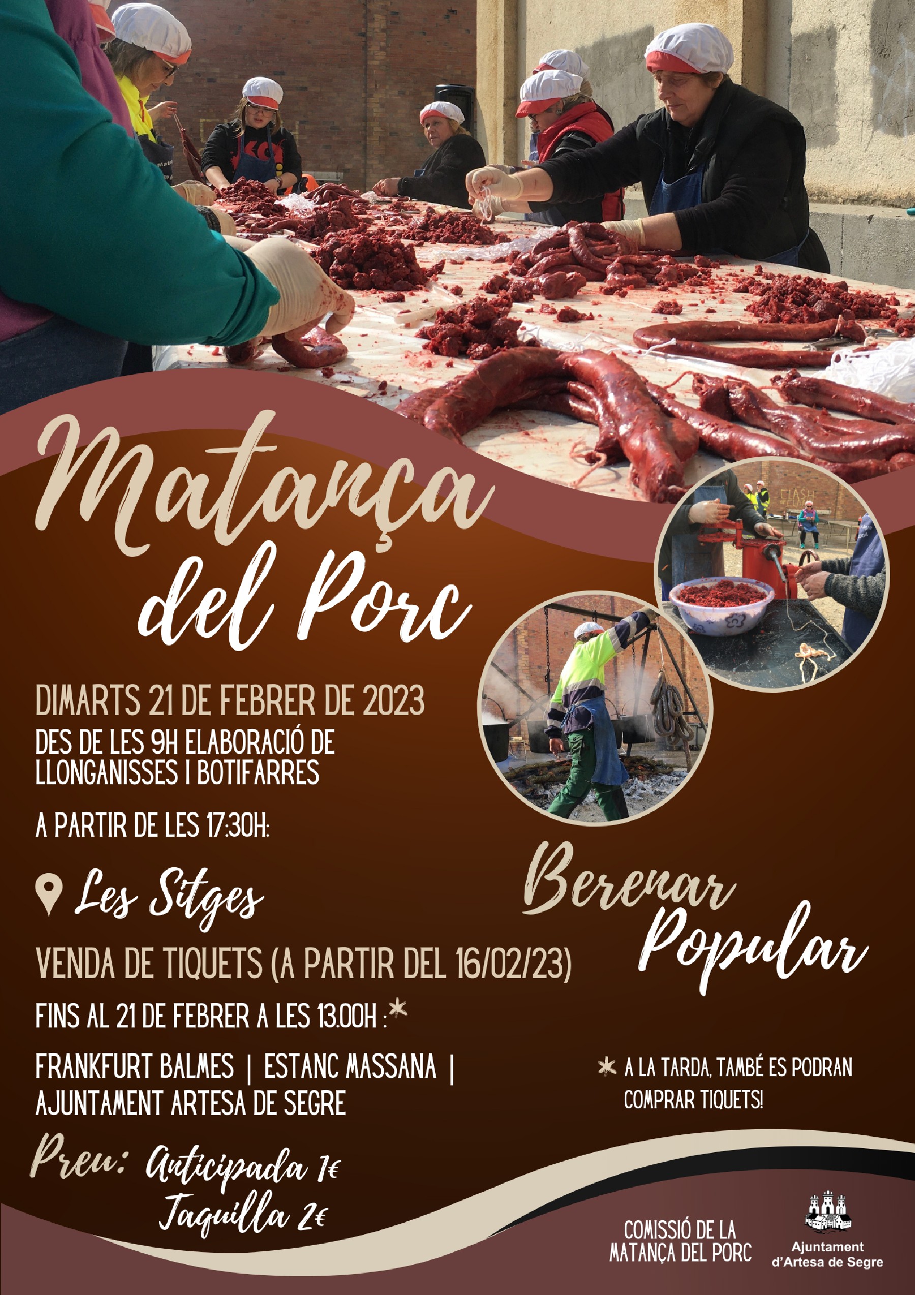 Artesa de Segre celebrarà la tradicional Matança del Porc el proper dimarts 21 de febrer amb l'elaboració de les llonganisses i botifarres, durant el matí, i el berenar popular a la tarda