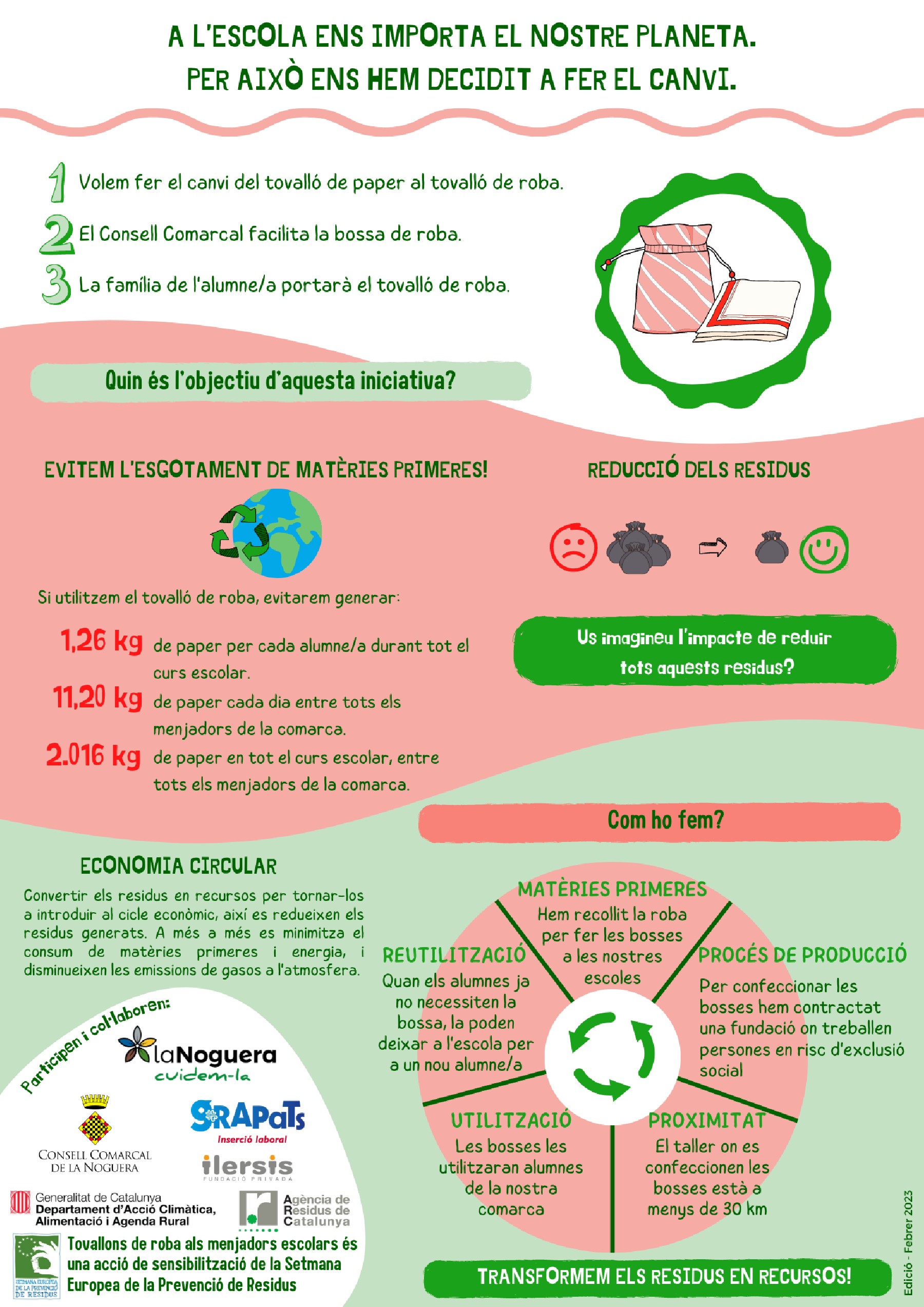 Impuls a l'ús de tovallons de roba als menjadors escolars de la Noguera