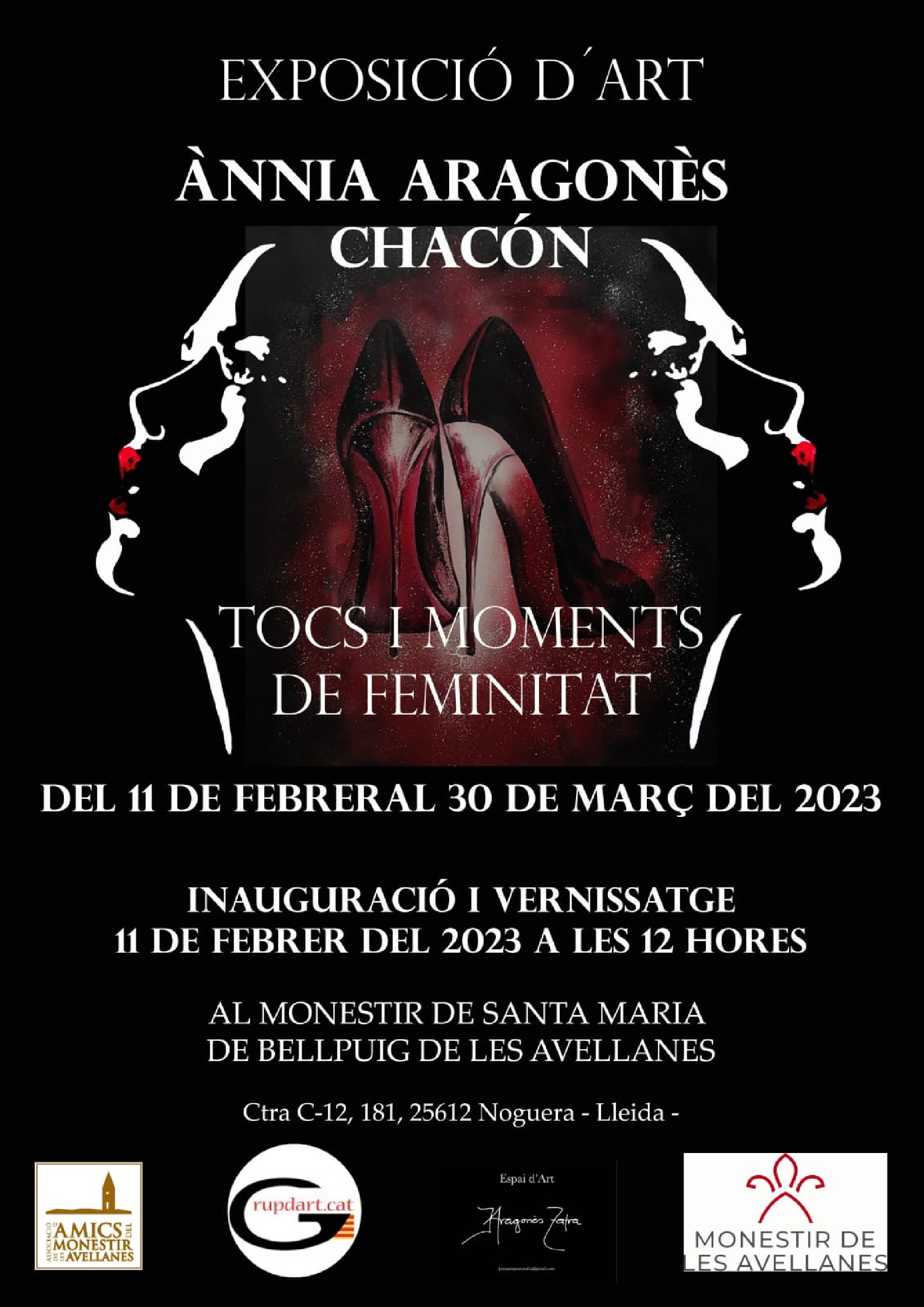 Ànnia Aragonès exposa 'Tocs i Moments de Feminitat' al Monestir de les Avellanes. Es tracta d'una mostra polifacètica que pretén mostrar la feminitat des de diferents perspectives