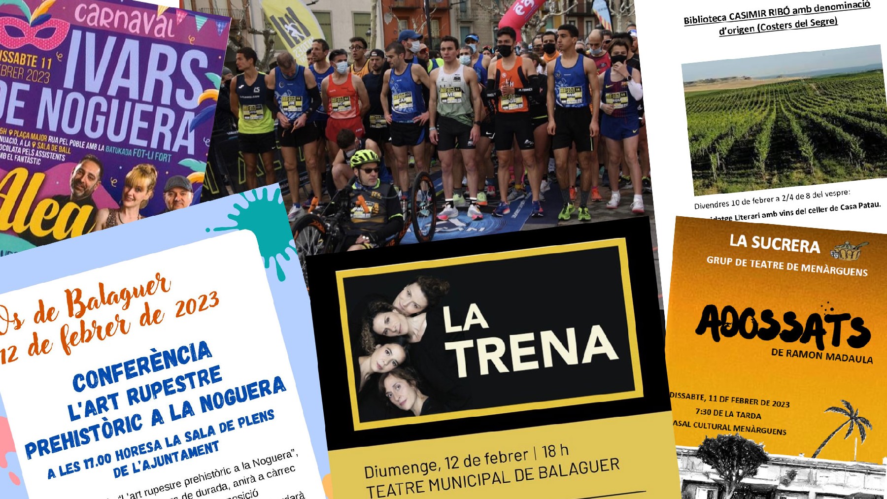 Aquest cap de setmana a Balaguer destaca la representació teatral de La Trena i l'obra de titelles Blauró. També la celebració de la Mitja Marató. A comarca us destaquem el primer carnaval i tres activitats sobre la prehistòria