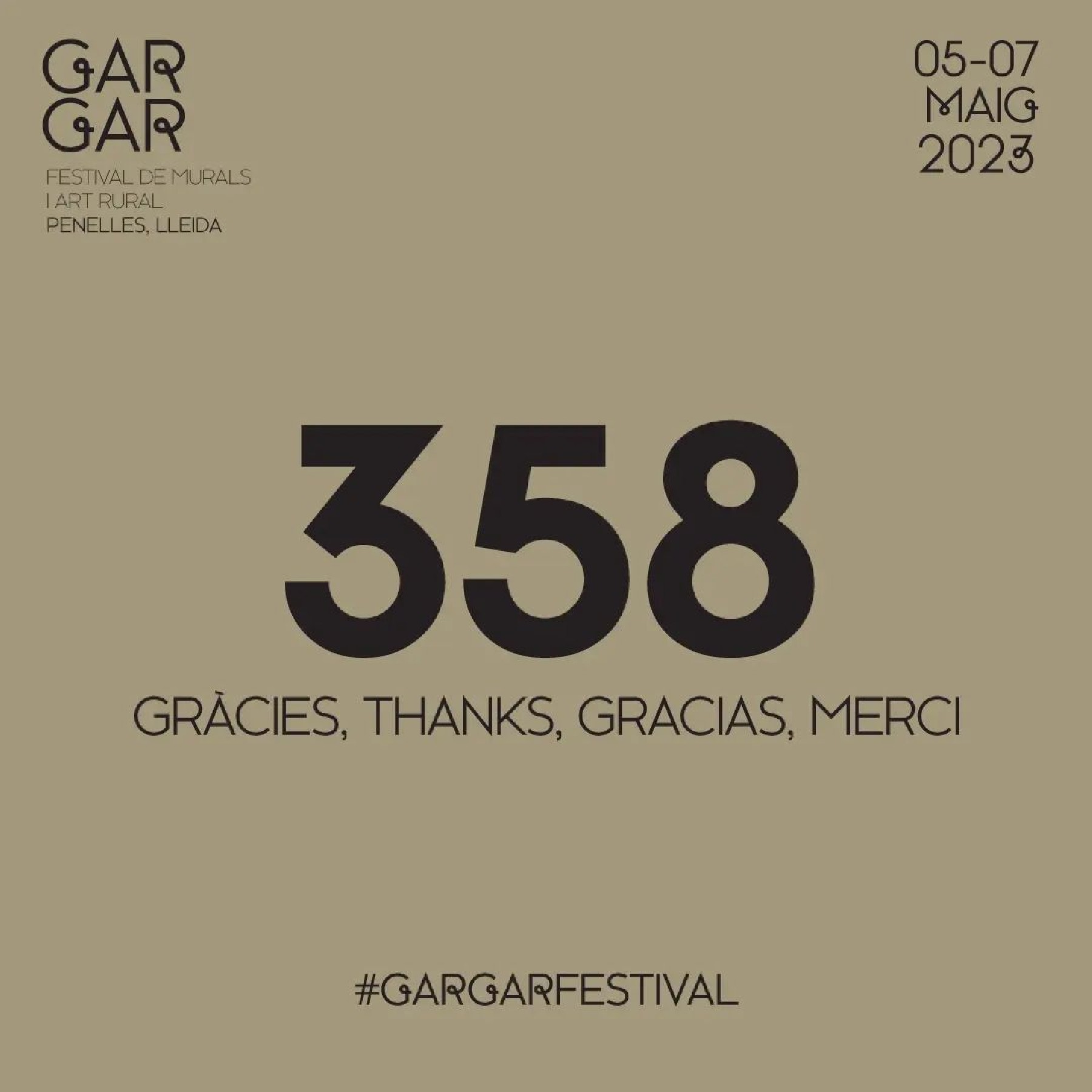 El Gargar Festival de Penelles tanca amb 358 inscripcions la convocatòria de cara a l'edició 2023, que se celebrarà els dies 5, 6 i 7 de maig. Ara es farà la selecció dels artistes que disposaran d'espai per fer la seva obra en un dels 13 murs d'enguany