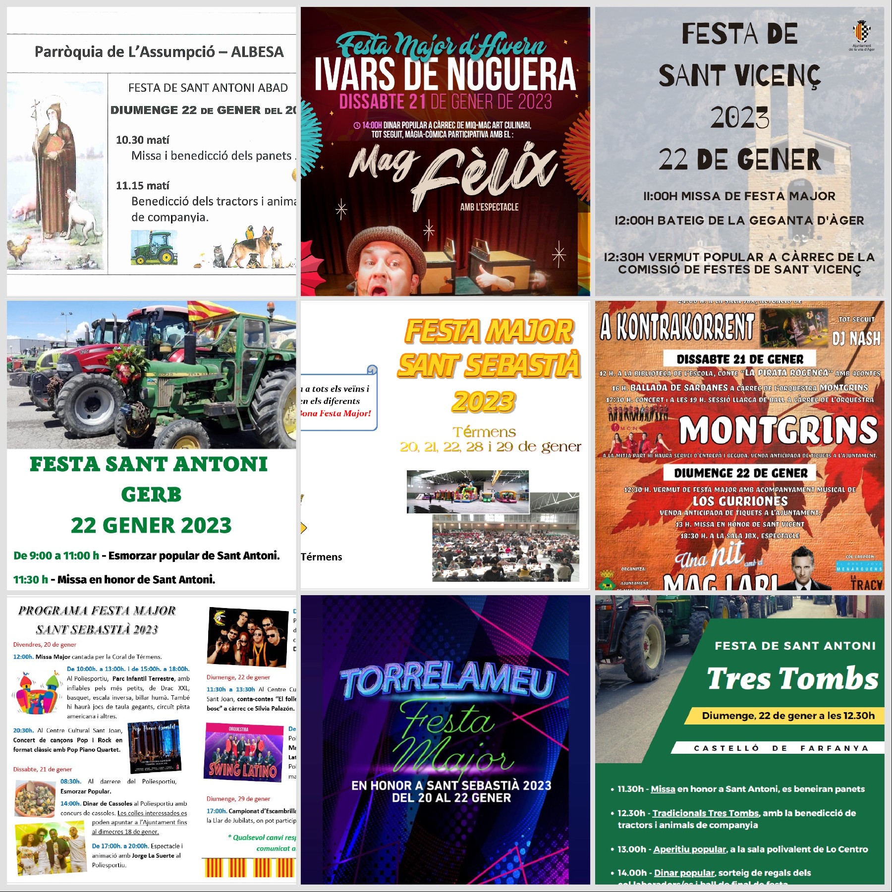 Agenda de comarca amb festes majors de Menàrguens, Térmens, Torrelameu i Ivars de Noguera, Àger. També dels pobles que celebren els tres Tombs aquest cap de setmana: Albesa, Castelló de Farfanya, Gerb, La Sentiu de Sió, Penelles