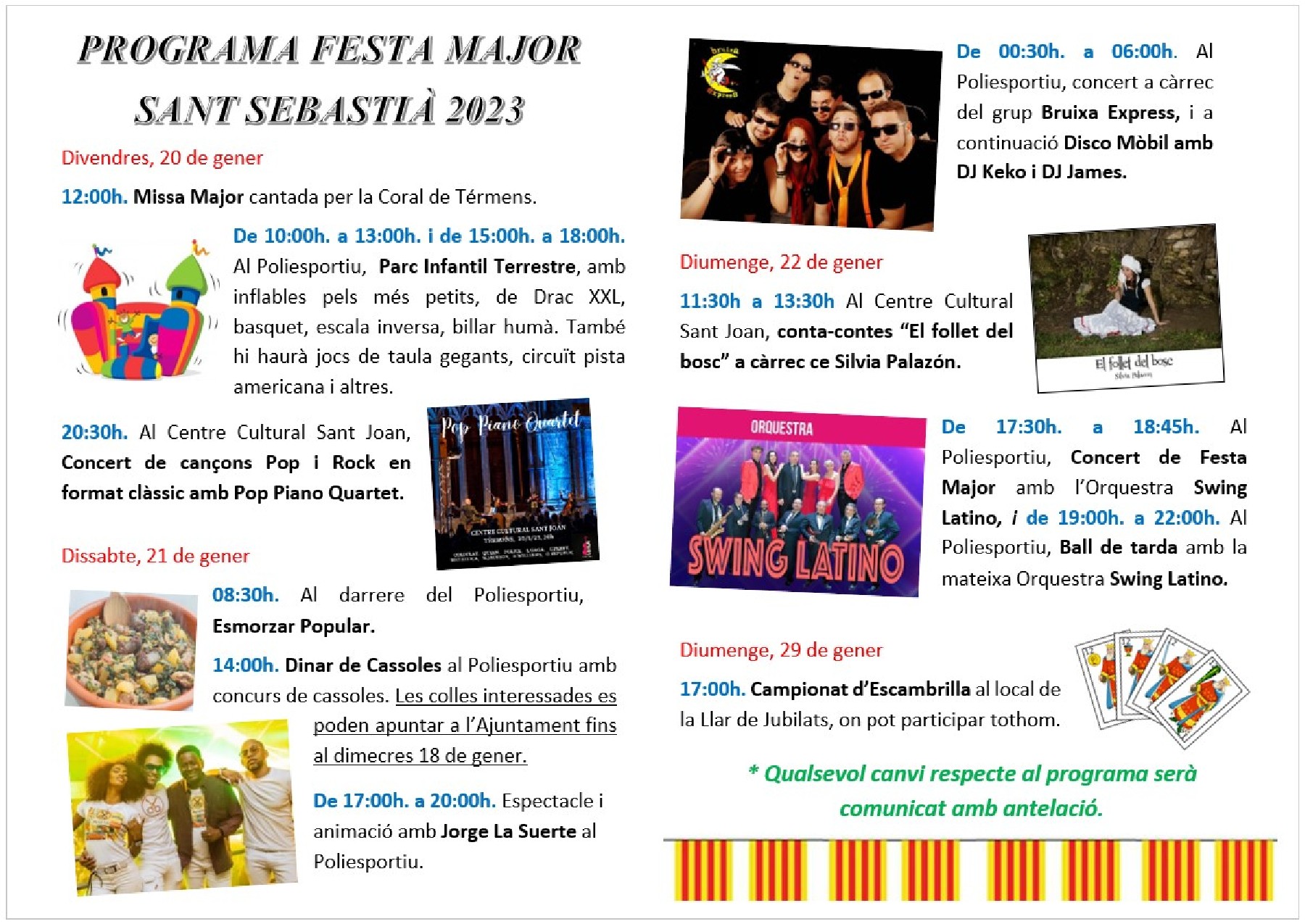Térmens celebra aquest cap de setmana la seva Festa Major d'hivern en honor a Sant Sebastià. Concerts, balls i un contacontes són alguns dels actes destacats, juntament amb la festa de les cassoles, que es realitzarà dissabte al migdia