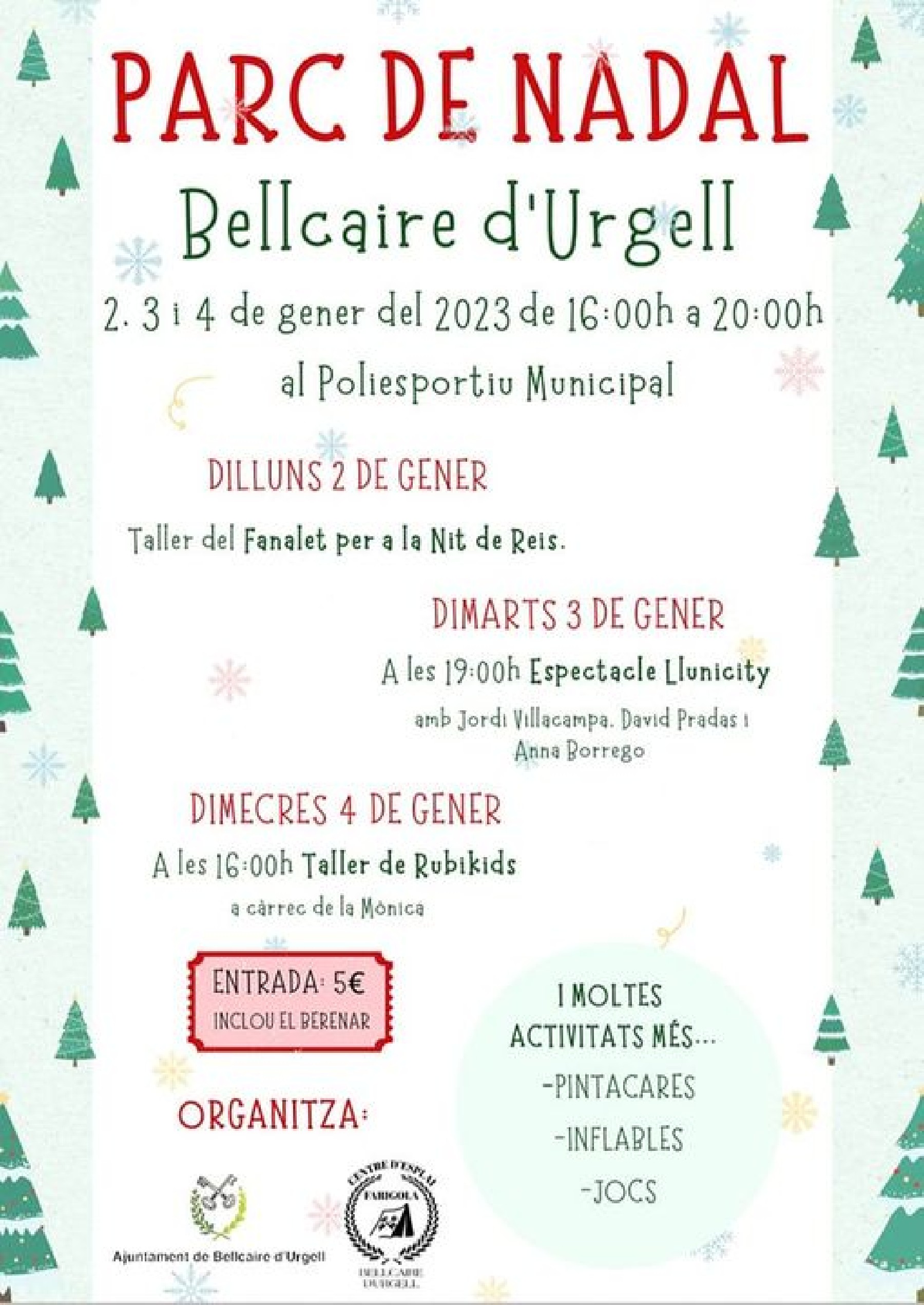 Aquest dilluns s'estrena el Parc de Nadal de Bellcaire d'Urgell. Es realitzarà fins dimecres cada tarda, de 4 a 8 del vespre, al poliesportiu municipal