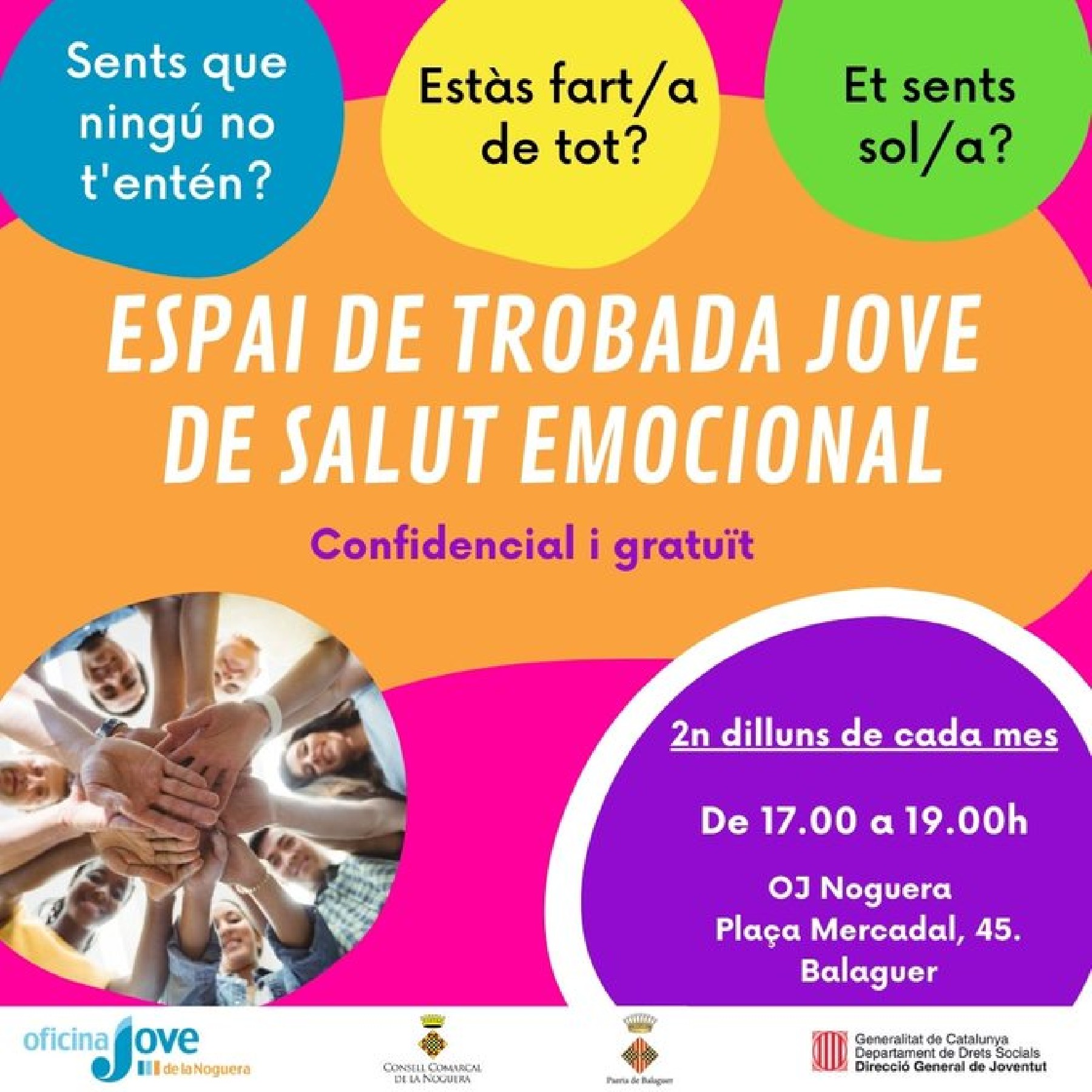 L'Oficina Jove de la Noguera estrena un nou Espai de Trobada Jove de Salut Emocional. Es tracta d'un servei adreçat als joves d'entre 12 i 30 anys, on podran compartir dubtes, experiències i preocupacions amb altres joves de la comarca