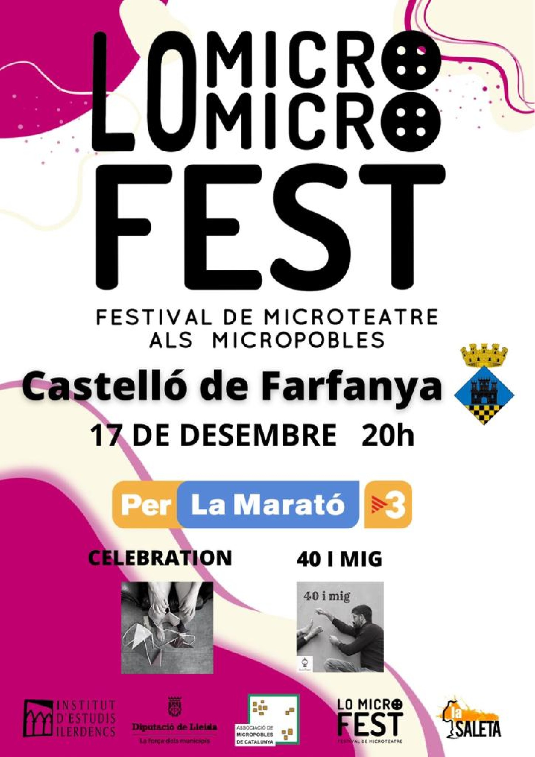 Aquest dissabte Lo Micro Fest, festival de microteatre als micropobles, fa parada a Castelló de Farfanya. Ho farà amb els espectacles 'Celebration' i '40 i mig', en una activitat a benefici de la Marató de TV3