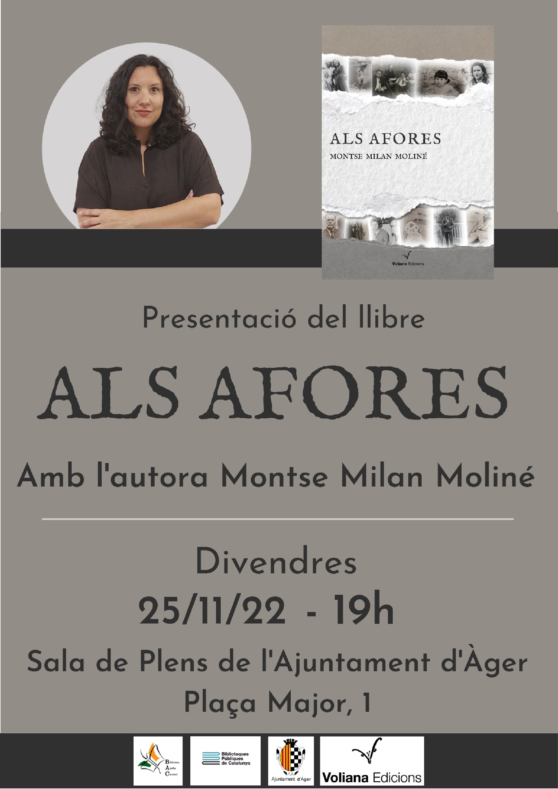 Montse Milan presentarà el seu llibre Als Afores', aquest divendres a Àger. El llibre és un recull de contes ambientats en un carrer de les afores de la ciutat de Lleida als anys 50