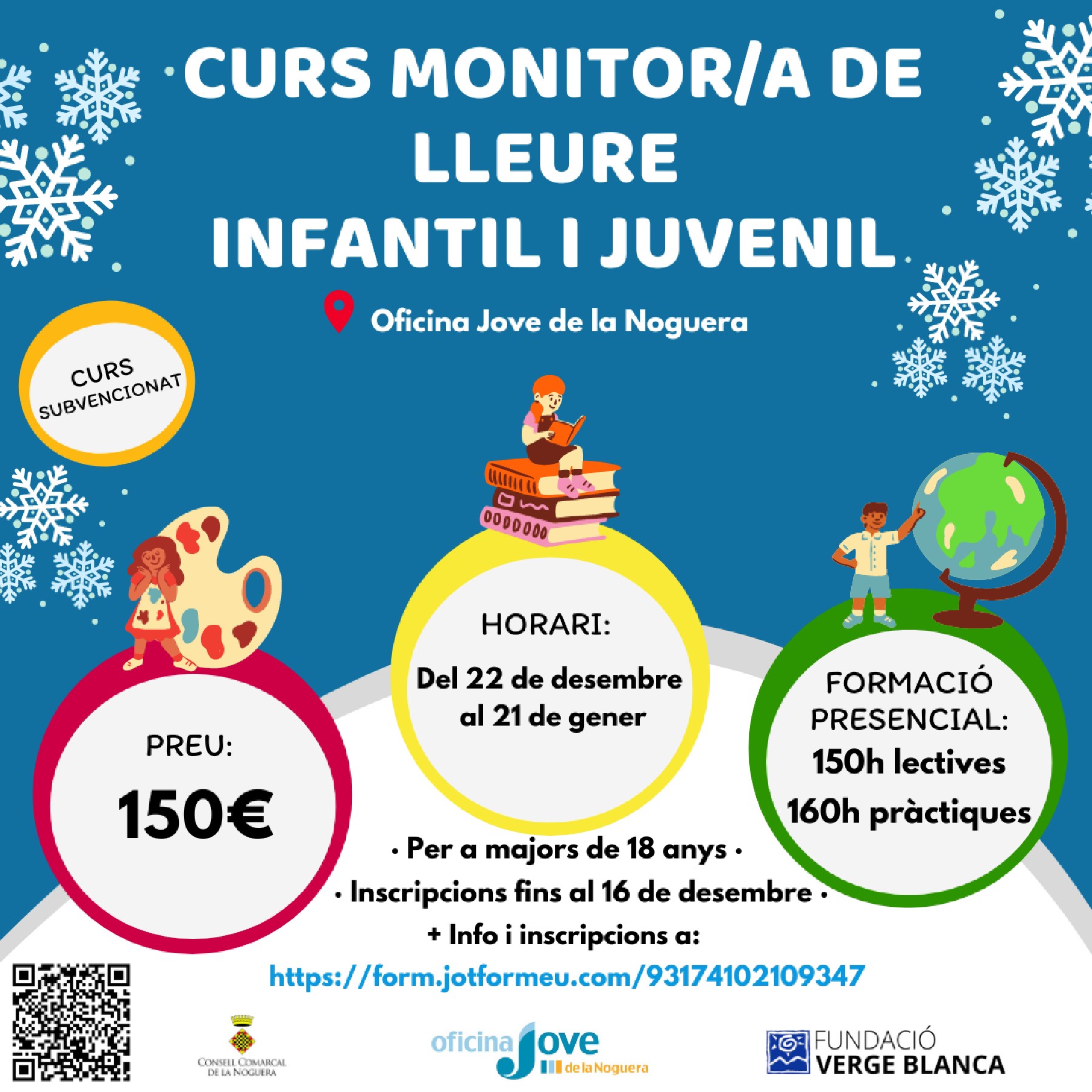 L'Oficina Jove de la Noguera programa un curs de monitor/a de lleure dirigit preferentment a joves d'entre 18 i 30 anys. Es durà a terme entre el 22 de desembre i el 21 de gener