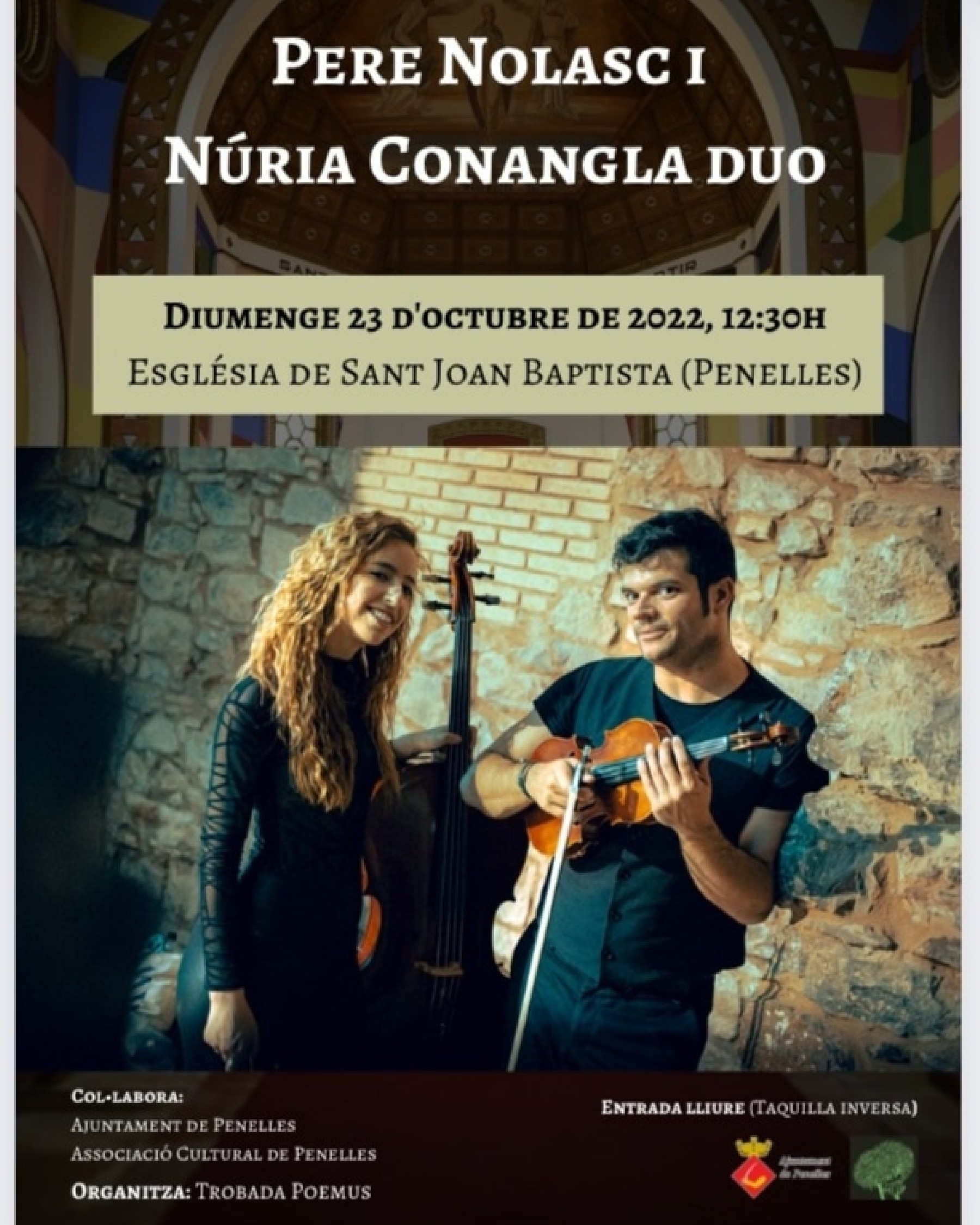 Pere Nolasc i Núria Conangla duo portaran un recital de violí i violoncel a l'església de Sant Joan Baptista de Penelles