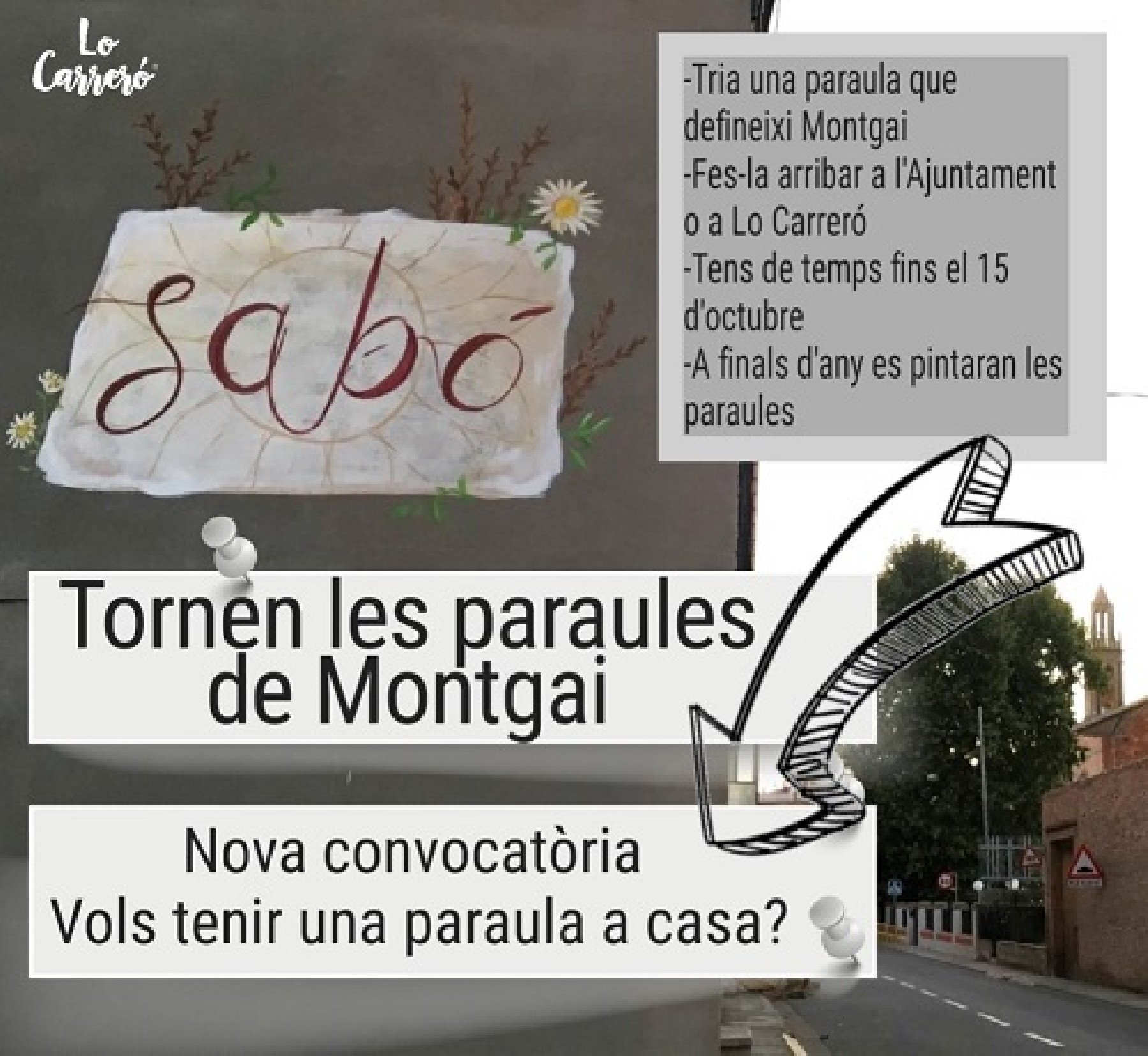 Tornen les paraules de Montgai, un projecte que permet als habitants del poble de definir amb les seves pròpies paraules com veuen el seu municipi, i queden pintades a les façanes