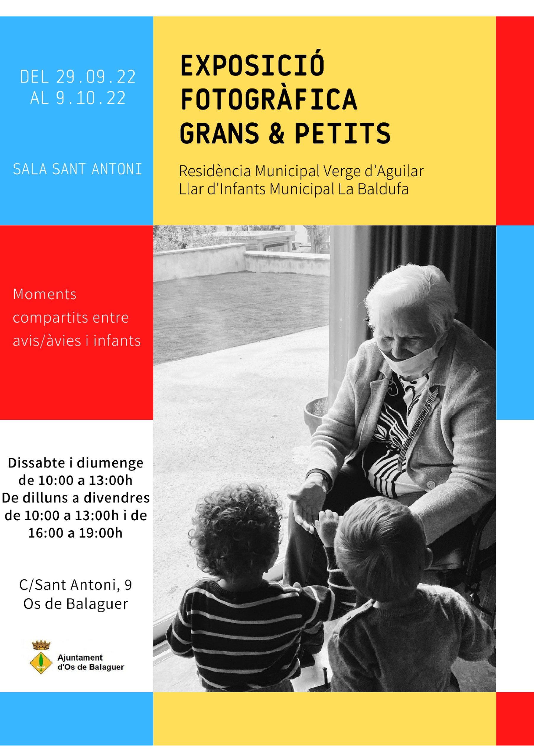 Durant tota aquesta setmana es pot veure a la Sala Sant Antoni d'Os de Balaguer l'exposició fotogràfica Grans i Petits, feta amb avis de la residència municipal Verge d'Aguilar i la llar d'infants municipal La Baldufa