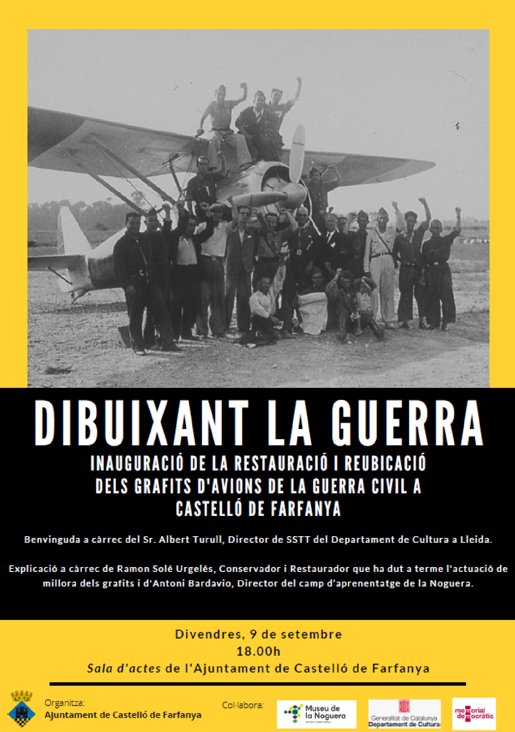 Castelló de Farfanya inaugurarà aquest divendres la restauració i reubicació dels grafits dels avions de la Guerra Civil de l'Església de Santa Maria. Serà dins d'un acte de memòria històrica anomenat Dibuixant la guerra'