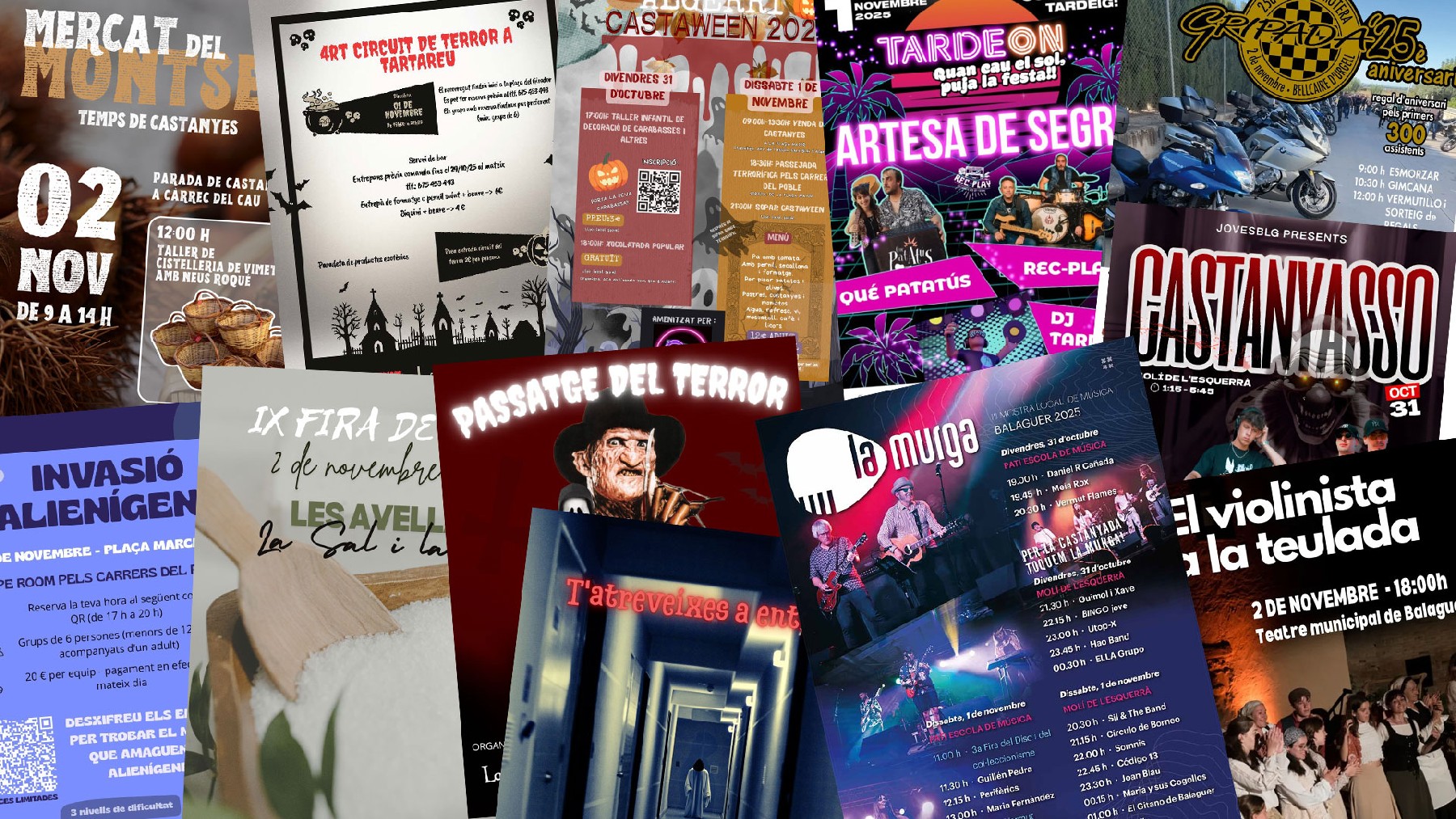 Cap de setmana de Castanyada i Halloween a Balaguer i comarca. A més, és la Fira de la Sal a les Avellanes i a Balaguer La Murga omple de talent musical local els seus escenaris. L'oferta es complementa amb swing i teatre