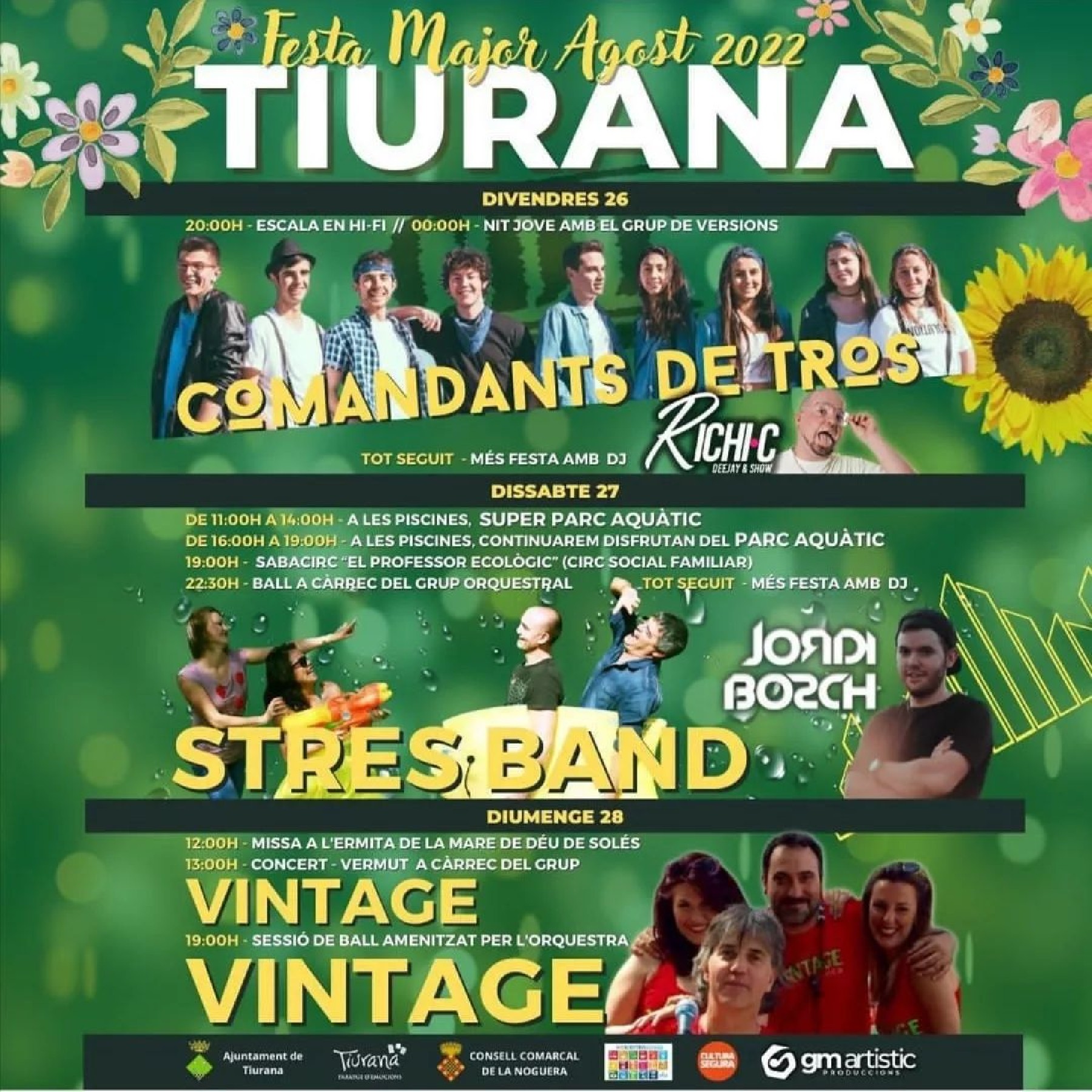 Tiurana celebra la festa major fins diumenge. Divendres hi actuen els Comandants de tros i dissabte Stress Band. A més hi haurà activitats familiars com circ i un parc aquàtic