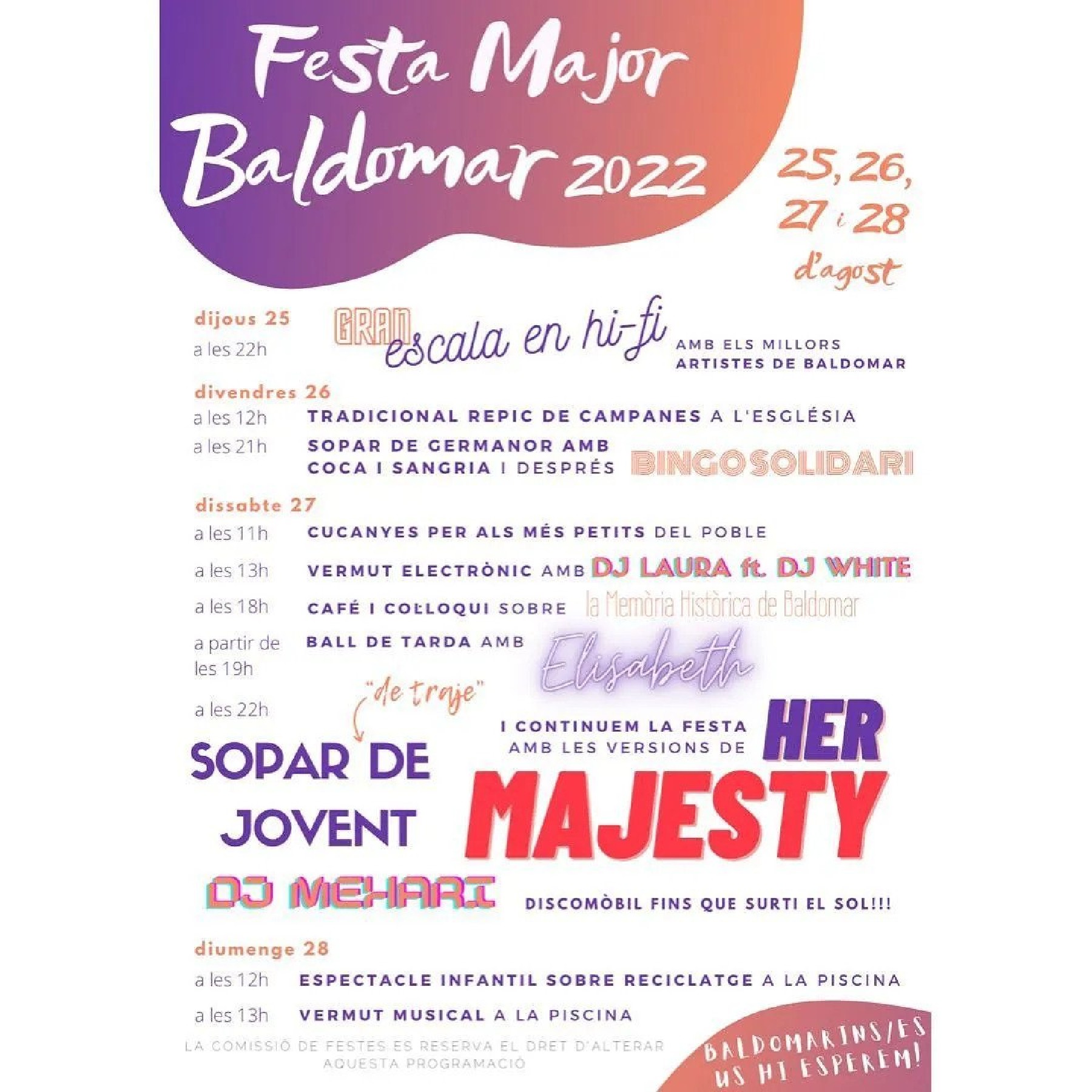 El nucli de Baldomar, a Artesa de Segre, celebra aquest cap de setmana la seva festa major. El gruix d'actes es concentra el dissabte amb activitats infantils, ball i gresca de matinada