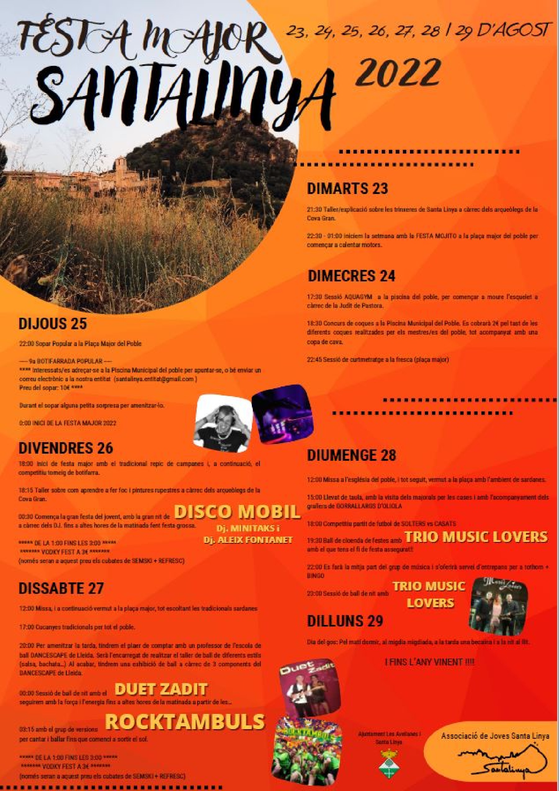Santa Linya celebra la seva festa major, amb un extens programa que comença aquest dimarts i que inclou des de conferències i tallers a sopars populars i els balls i gresca nocturna per al jovent