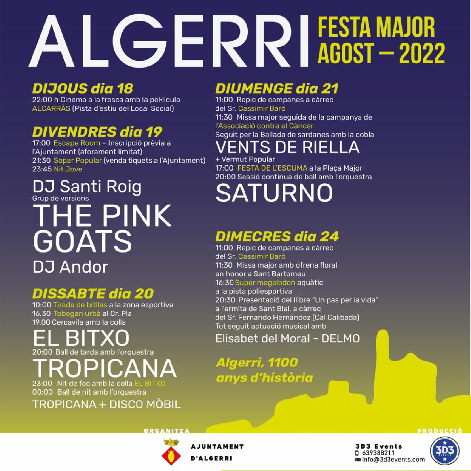 Algerri celebra la seva Festa Major amb activitats per a tots els públics. No hi faltaran la música amb diferents orquestres, activitats infantils o un sopar popular