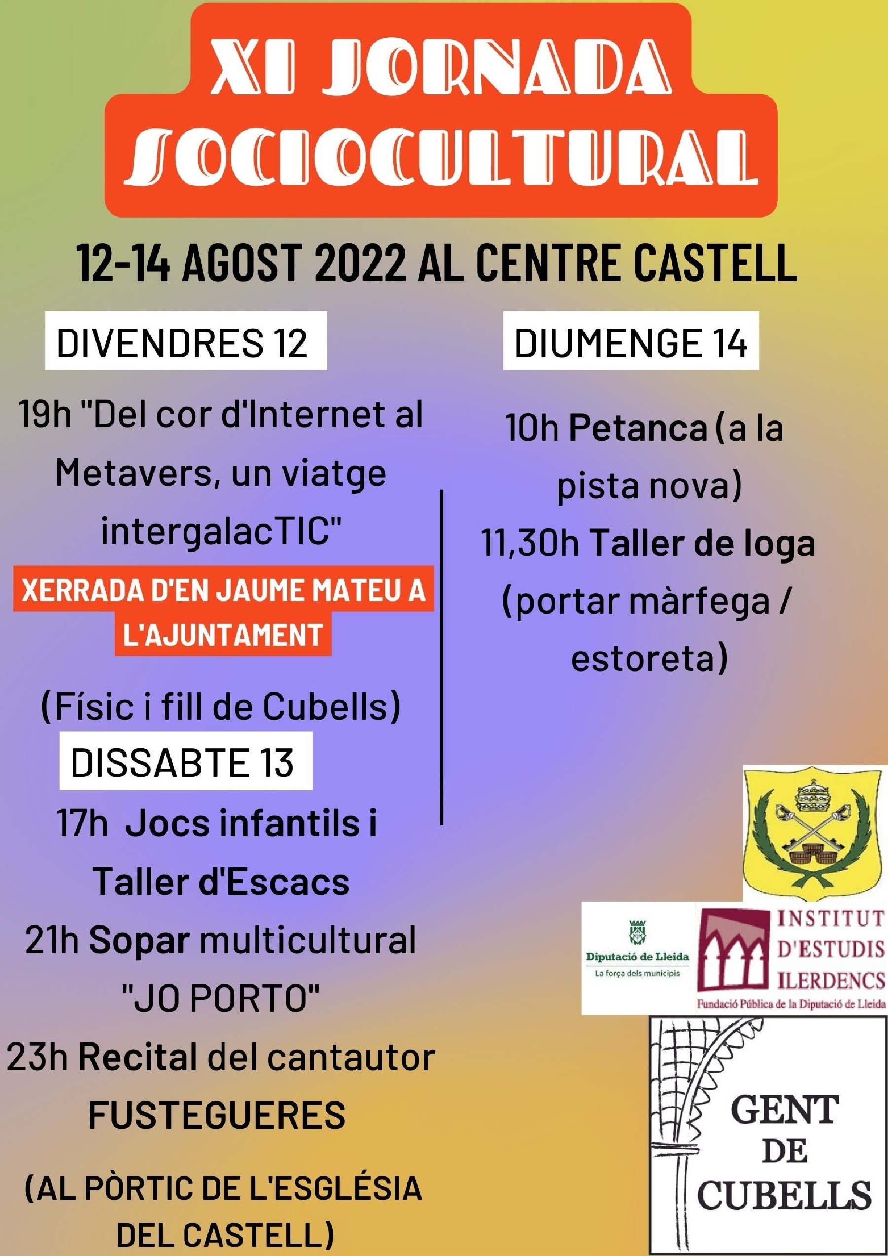 Aquest cap de setmana del 12 i 14 d'agost tindrà lloc la XI Jornada Sociocultural de Cubells. Inclourà una xerrada, tallers i jocs, un recital poètic o un taller de ioga, a més del sopar JO PORTO