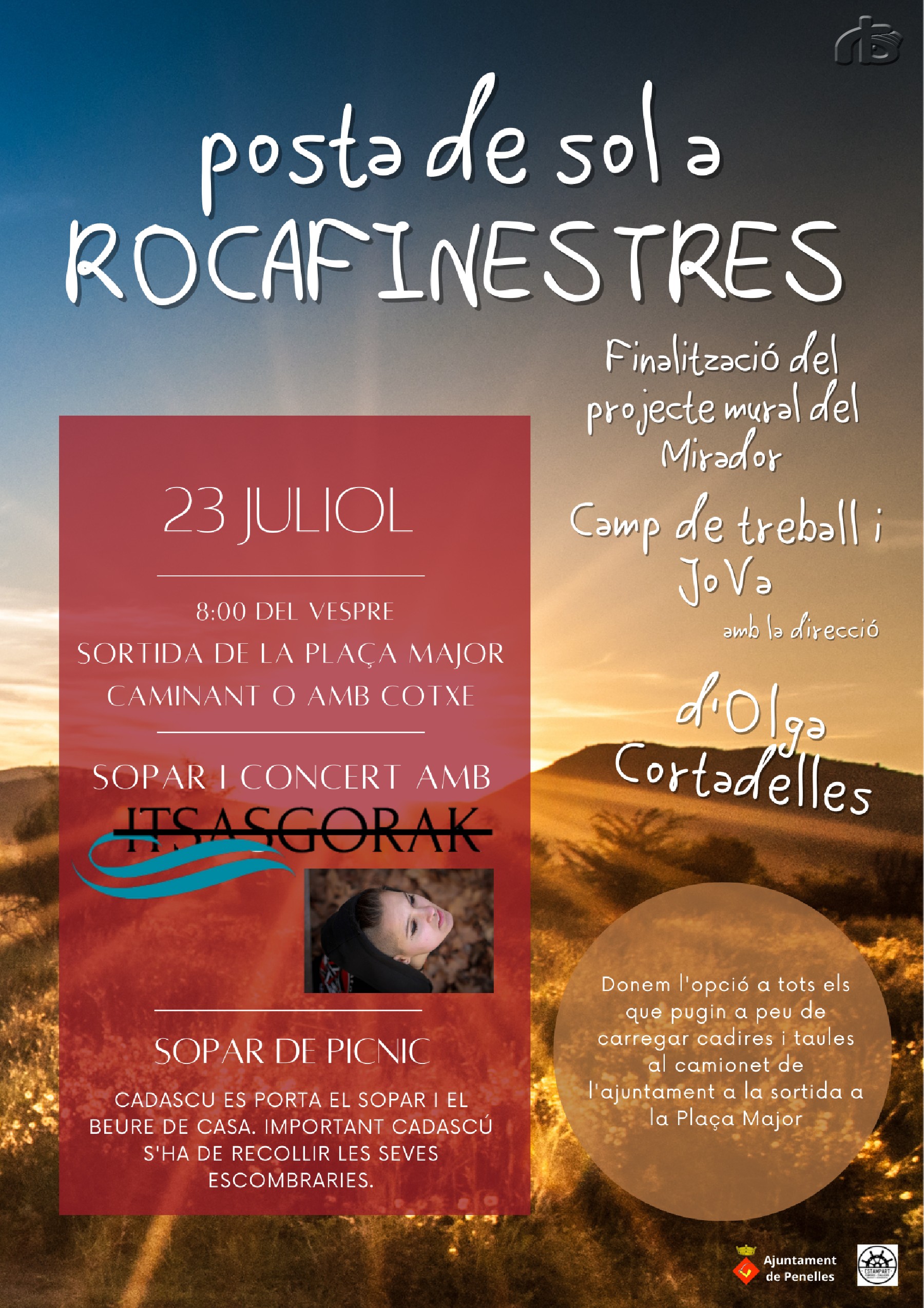 Els participants del Camp de Treball que aquests dies s'està fent a Penelles i els del projecte JOVA finalitzaran el proper dissabte, 23 de juliol, el projecte mural del mirador a Rocafinestres