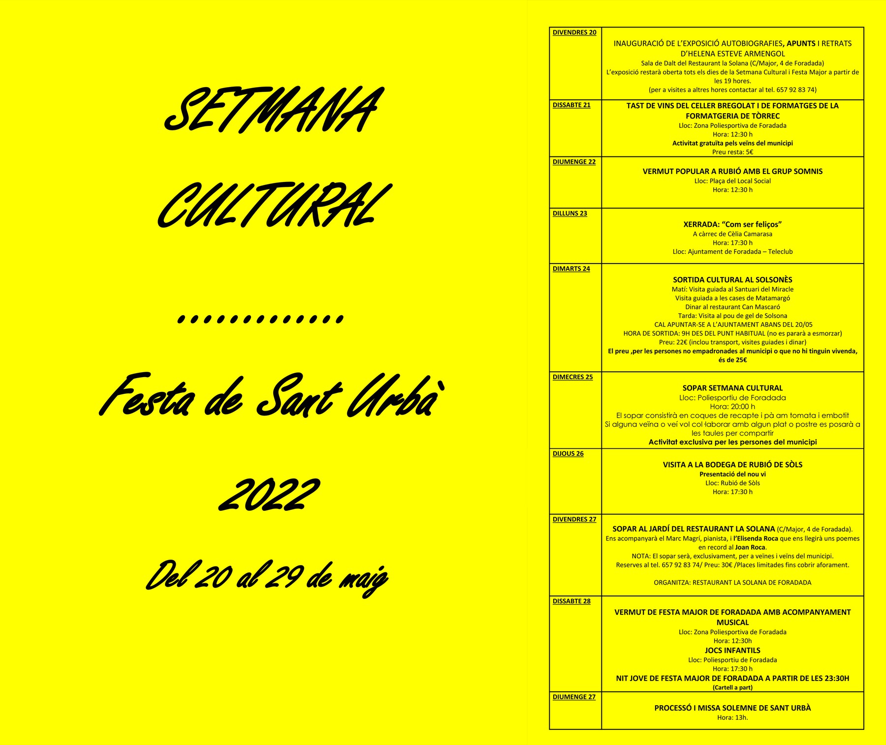 Foradada inicia aquest dissabte la programació d'actes en motiu de Sant Urbà, que des del municipi han agrupat en una setmana cultural fins al diumenge 27 de maig