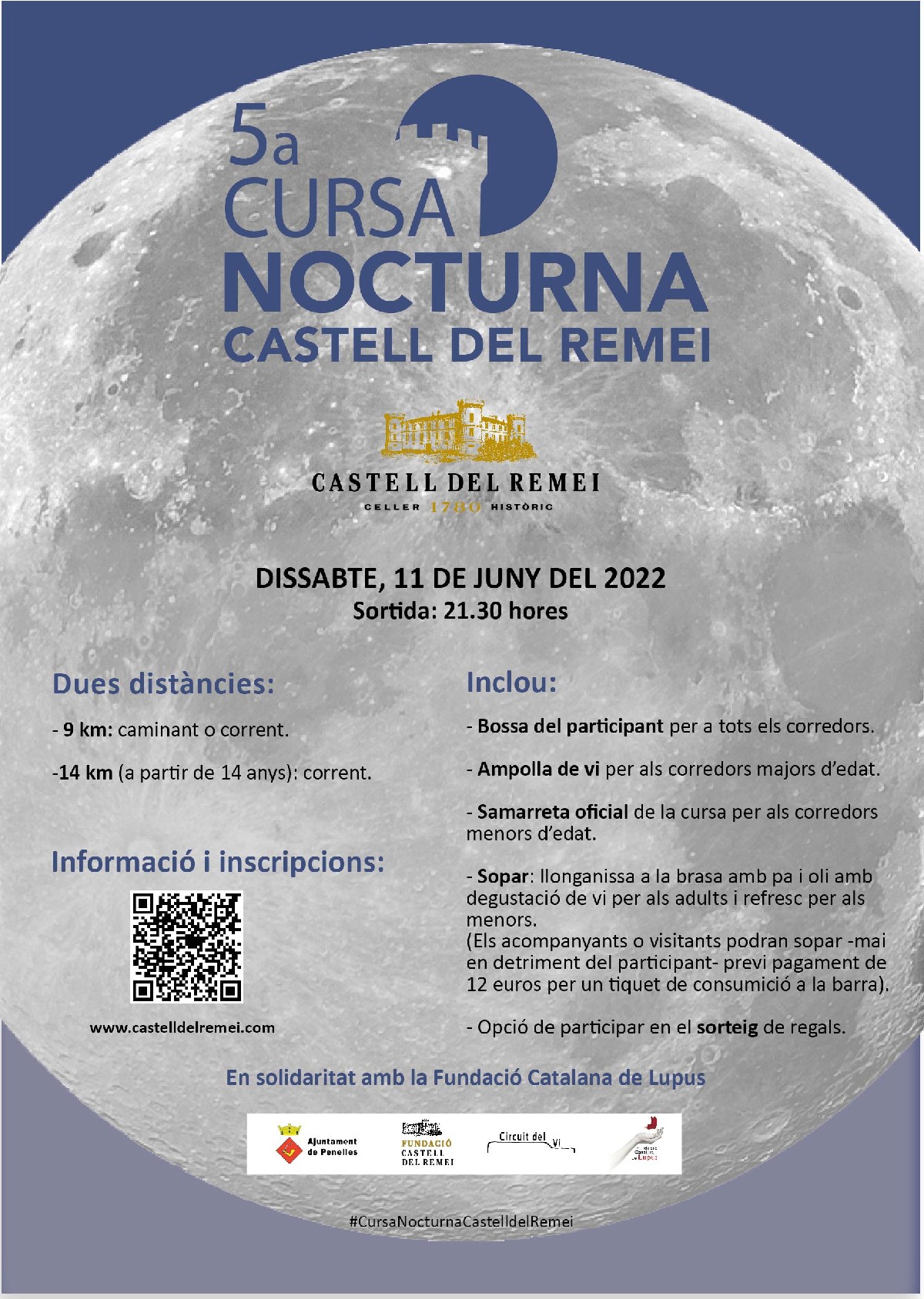El dissabte 11 de juny torna la Cursa nocturna del Castell del Remei. Es podrà realitzar en dues modalitats: la de 9 km, corrent o caminant; i la de 14km, exclusiva per a corredors de més de 14 anys
