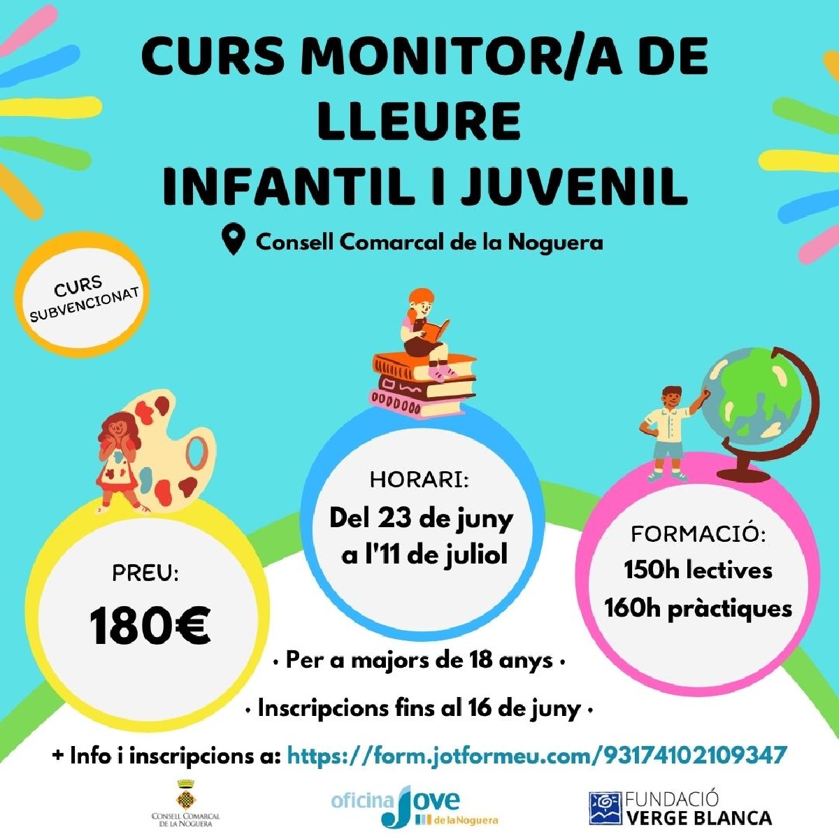 L'Oficina Jove reprèn aquest estiu el curs de monitor/a de lleure en format presencial. El curs, impartit per la Fundació Verge Blanca de Lleida, es durà a terme entre el 23 de juny i l'11 de juliol a la seu del Consell Comarcal de la Noguera
