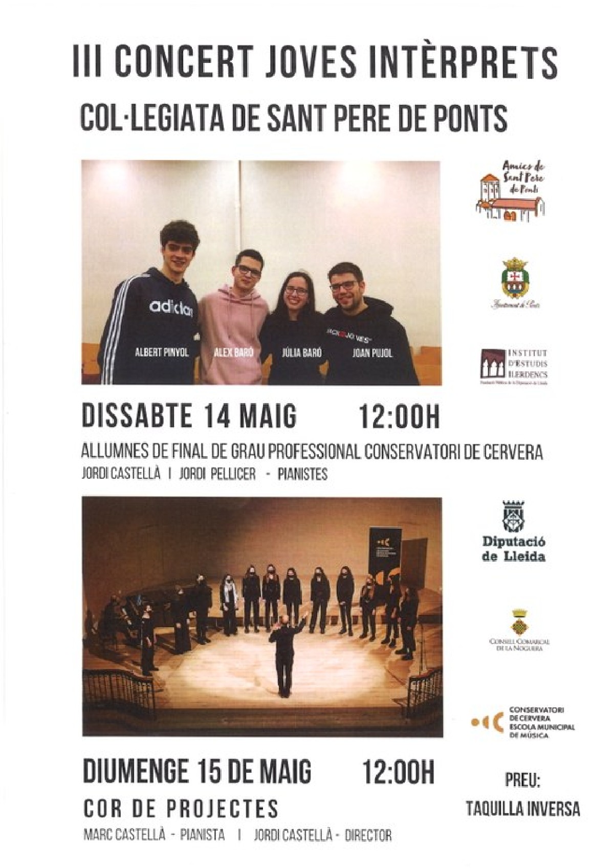 Aquest cap de setmana tornen els concerts del 3r Joves Intèrprets a Ponts. Es faran dissabte i diumenge a la Col·legiata de Sant Pere i aniran de la ma dels estudiants del Conservatori de Cervera