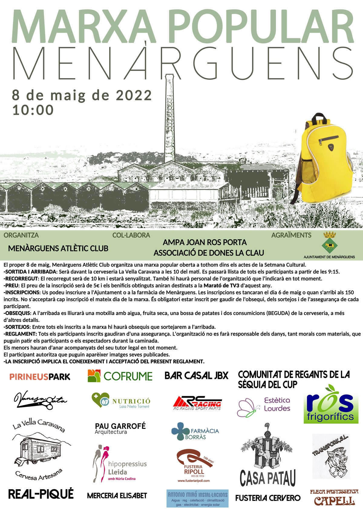 Aquest diumenge tindrà lloc la Marxa Popular Menàrguens, una marxa popular oberta a tothom amb un traçat de 10 km i en benefici de la marató de Tv3