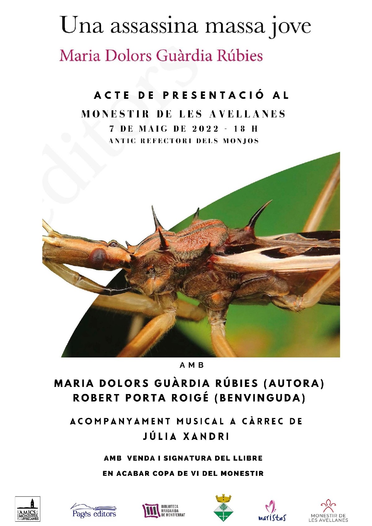 Aquest dissabte 7 de maig es presentarà el llibre 'Una assassina massa jove' de Maria Dolors Guàrdia Rúbies, al Monestir de Santa Maria de les Avellanes