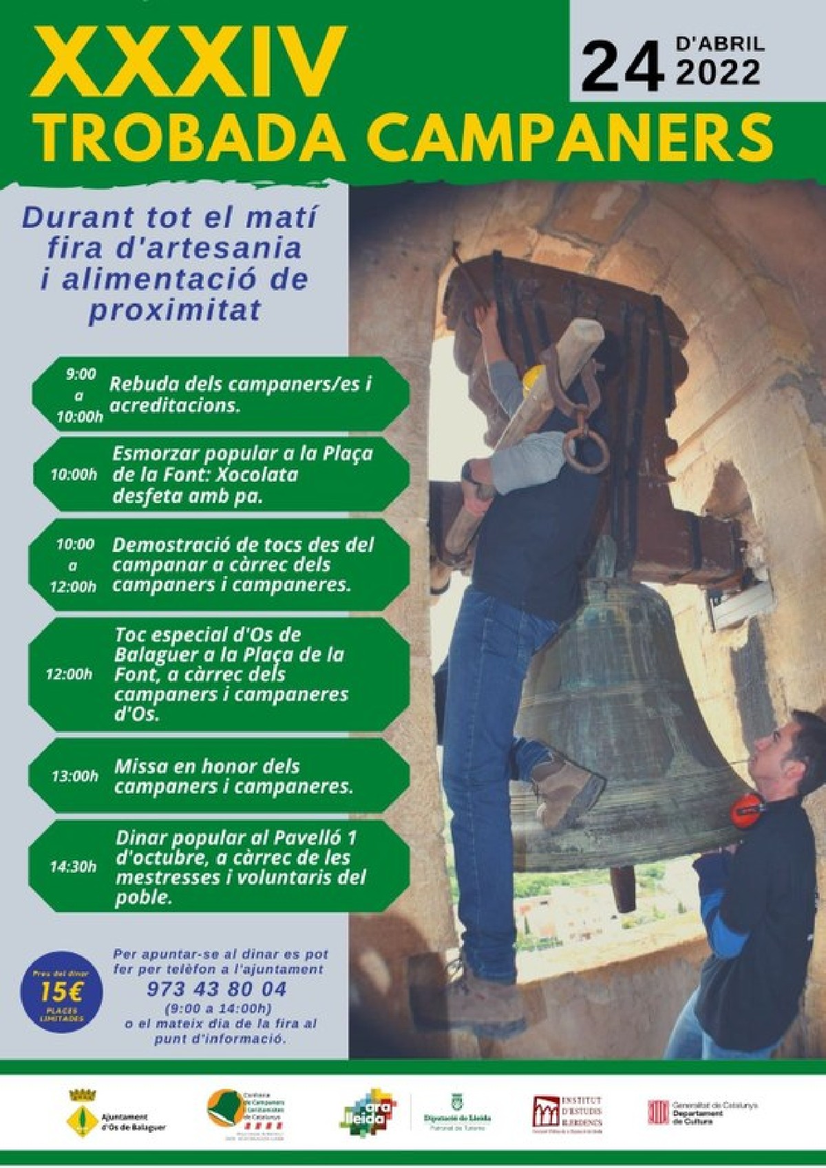 Os de Balaguer prepara la 34a Trobada de campaners, que es celebrarà el diumenge 24 d'abril conjuntament amb la 23a Fira de la Campana