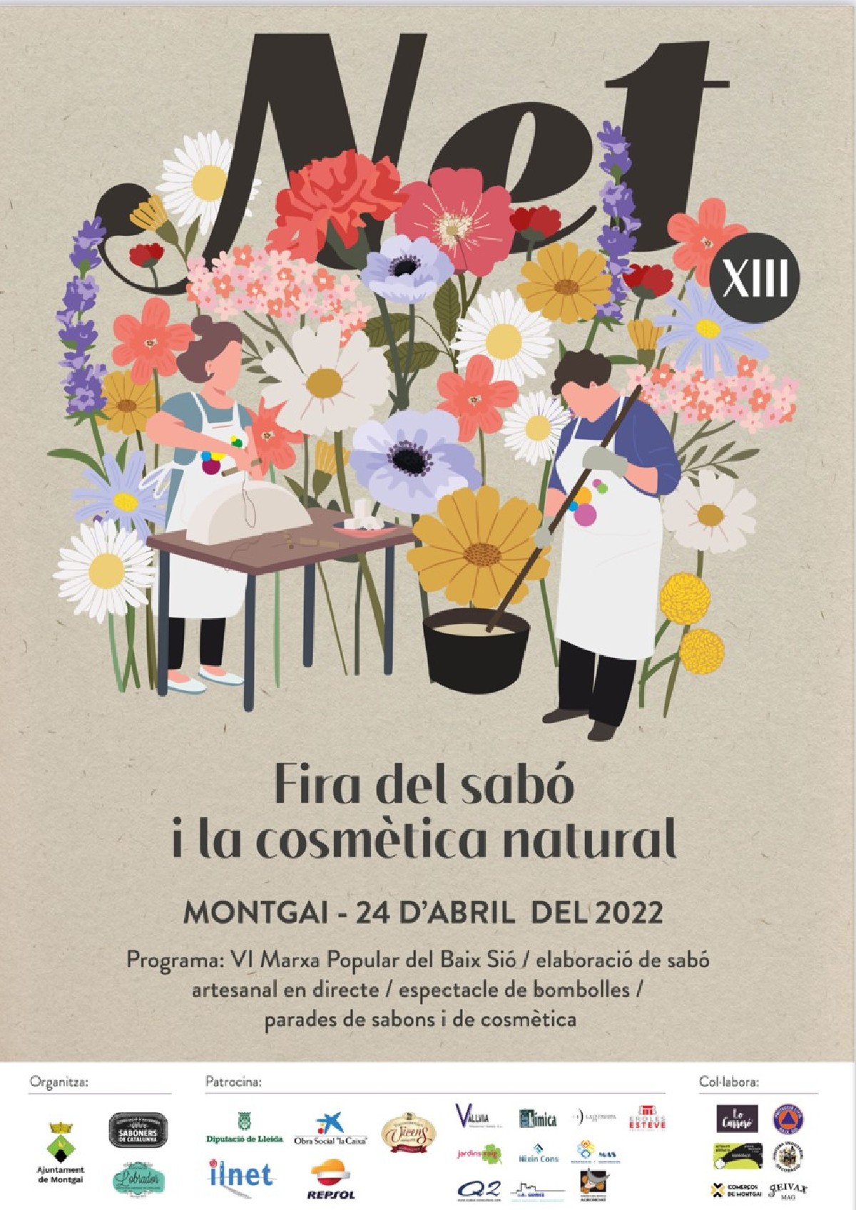 El 24 d'abril se celebrarà la XIII Net, fira del Sabó i de la Cosmètica Natural de Montgai. El certament comptarà amb unes 15 parades de sabons i cosmètica natural, i uns 30 expositors artesans de productes de proximitat