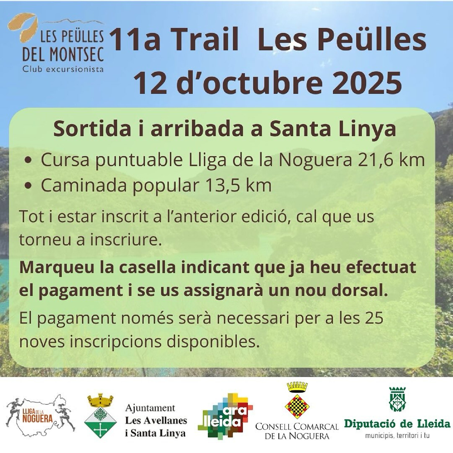 Santa Linya acollirà el proper diumenge 12 d'octubre l'11a Marxa-Trail Les Peülles, reprogramada després de la suspensió de març, i que ja compta amb més de 300 corredors assegurats a poques hores de tancar inscripcions
