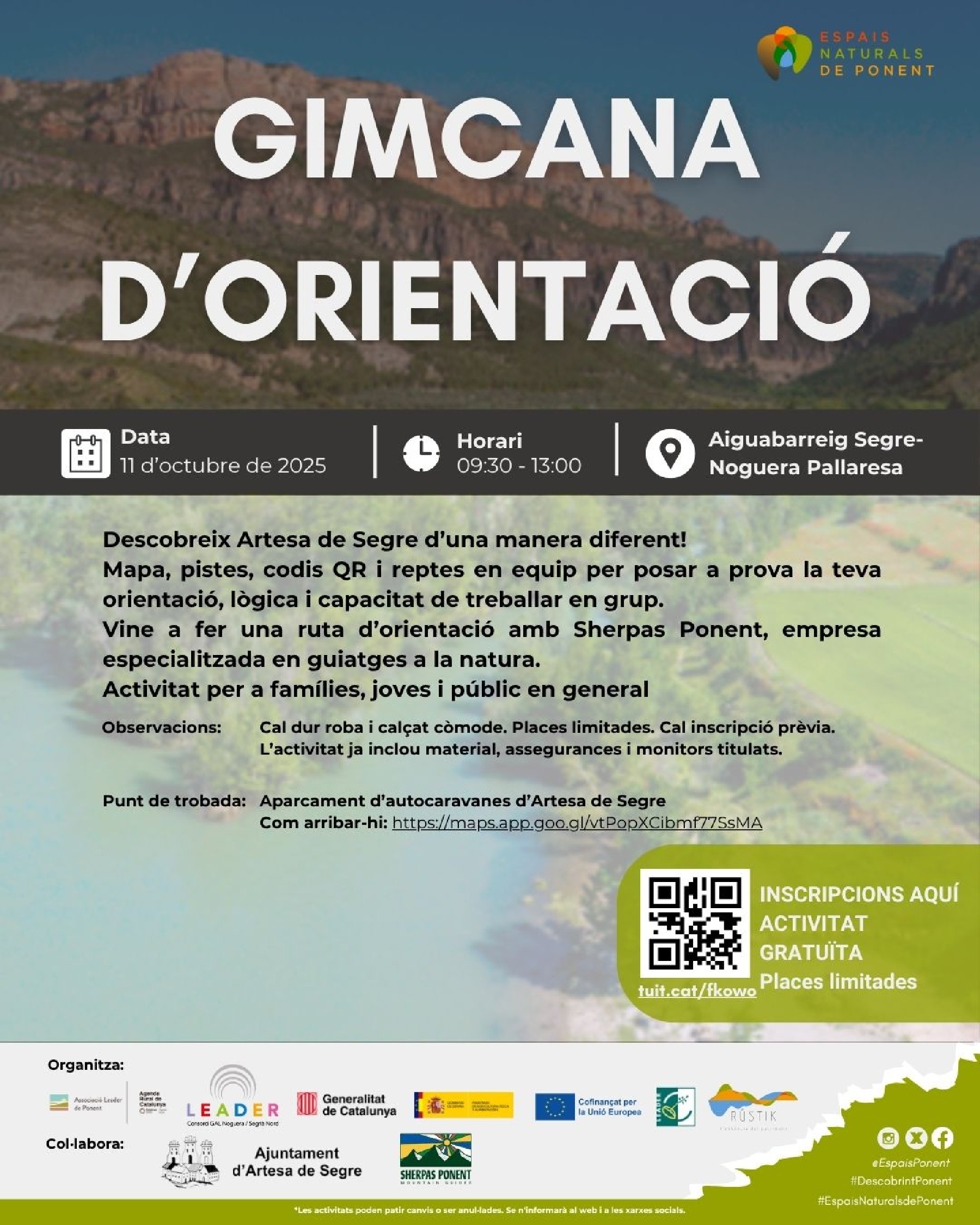 Artesa de Segre acollirà aquest dissabte una gimcana d'orientació per descobrir els Espais Naturals de Ponent